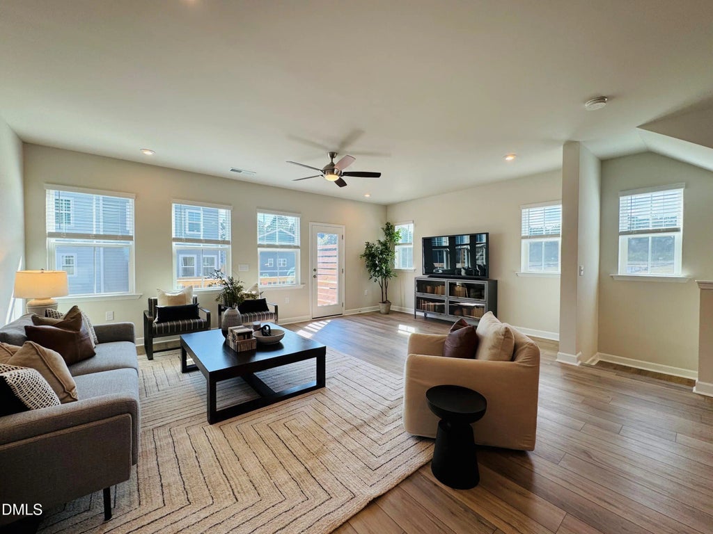 Move In Ready! Includes GE stainless fridge & 2'' faux wood blinds. Welcome Home to the RYDER! Spacious 4 BR/3.5 Bath End Unit townhome in The Mews in Holding Village. First floor features a guest suite with full bath and built in drop zone. Oak tread staircase leads to the 2nd floor. Spacious great room, kitchen & dining area. Enjoy tons of natural light from all the windows. The kitchen includes a large island, pendent lights, Admiral cabinets & quartz counters. Driftwood EVP throughout the second floor. The third floor showcases the primary suite with tiled shower and large walk in closets. Two additional bedrooms, full bathroom, and laundry room. Attached 2 car garage. 9ft ceilings on all floors. Other features include: tankless gas water heater, Ring doorbell, Schlage Front Door Lock, electric car charging outlet, whole house surge protector. The community features a 15 acre lake, pool, clubhouse, parks, and trails!