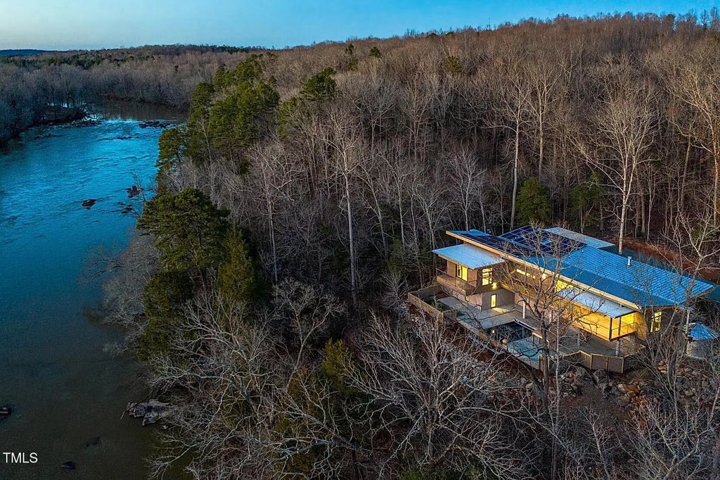 A Majestic Haven on the Haw Welcome to an extraordinary riverside sanctuary less than 20 minutes from the heart of Chapel Hill and the University of North Carolina. This 21-acre estate, gracing the banks of the majestic Haw River, seamlessly blends luxury living with natural splendor. The property features nearly a mile of private riverside trails, perfect for hiking or accessing the river for canoeing, kayaking, and fishing—with abundant bass, carp, crappie, sunfish, and bluegill. This enchanting refuge teems with wildlife. Deer regularly graze the grounds, while otters and beavers make their home along the riverbank. Bird enthusiasts will marvel at the diverse avian population, including majestic bald eagles, great blue herons, ospreys, warblers, and kingfishers. Your home is comparable to this natural environment's beauty. Built in 2020 and designed by acclaimed architect Arielle Schechter—recognized among Forbes Magazine's 200 Best Residential Architects of 2025—this contemporary masterpiece showcases sophisticated design that harmonizes with its stunning setting. Breathtaking views of what many consider the river's most picturesque section are displayed through expansive windows, seemingly dissolving the boundary between indoors and out. Environmental consciousness meets luxury in this near net-zero residence, featuring: * Rooftop solar array * Geothermal heating and cooling * Triple-glazed European passive house windows and doors * Advanced water catchment system with dual 5,000-gallon cisterns * Solar reflective shades The property's resort-like amenities include: * Infinity pool with spa * Steam shower * Separate workshop building with exercise room * Upstairs bonus room * Private yurt This secluded residential resort offers an unparalleled living experience that must be seen to be truly appreciated.