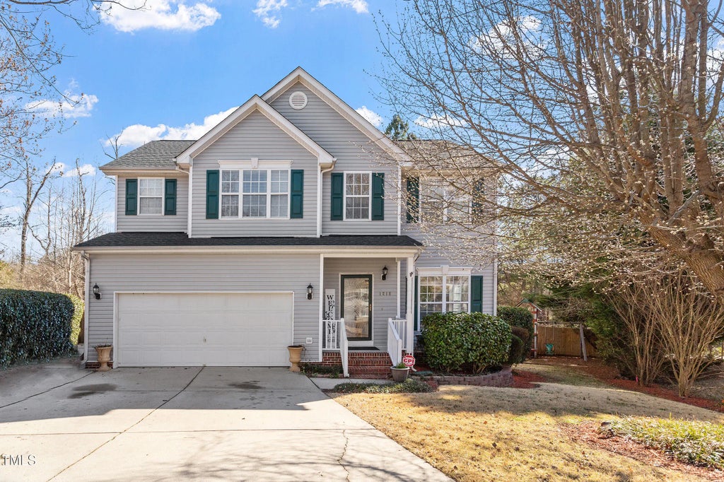 Welcome to 1218 Twelve Oaks Lane, a charming 4-bedroom, 2.5-bathroom home nestled in the desirable Ashley Downs community of Apex, on an expansive 0.8 acre lot! This 2,176 sq. ft. residence features vaulted ceilings, hardwood floors, and abundant natural light. ALL NEW CARPET AS OF SEPTEMBER 2025! NEW LVP flooring in living and dining room areas. The gourmet kitchen boasts 42-inch cabinets, granite countertops, an island with a mounted hanging pot rack above, beautifully classic tile backsplash, and a built-in desk. The spacious primary suite offers a garden tub, dual vanities, and a separate shower. Spacious 4th bonus room can be converted into a bedroom. Owners have freshly painted the entire home, including the 2 car garage! There is also a utility sink in garage convenient for home projects and gardening. Enjoy the private fenced backyard from the sunroom or deck, with the playground to convey. Situated in a cul-de-sac with fresh front yard sod, this home is walking distance minutes from top-rated schools including Olive Chapel Elementary (walking distance), Beacon Elementary, Apex Friendship, shopping (Publix), and endless dining options. With ceiling fans in every bedroom and ample storage, this home is move-in ready. NEW Window in Master Bathroom. Roof was replaced in 2020. PLEASE NOTE: Refrigerator, Washer and Dryer will NOT convey with property. New front door, storm door, and back doors. NEW stove in kitchen! Water heater was replaced in the home in 2016. New fan and light in the primary bedroom. New lights in kitchen!