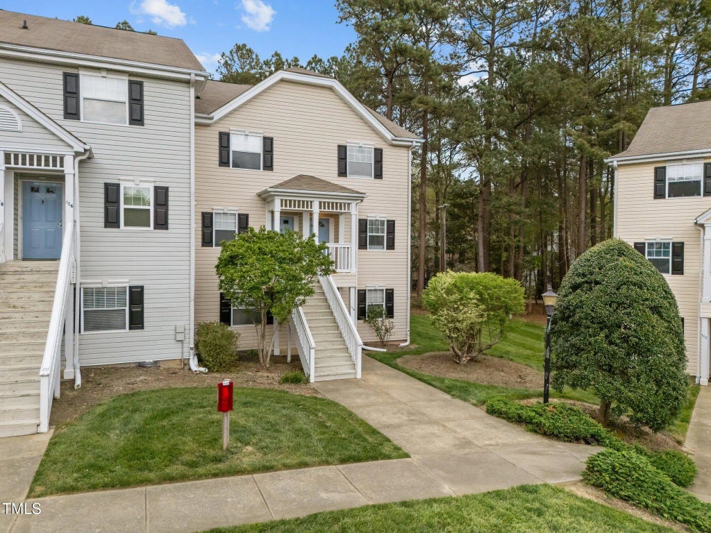 Upper floor, end unit with two spacious bedrooms - each with private en-suite bath. Kitchen with refrigerator and stackable washer/dryer that convey. Large living room that opens to a covered porch balcony and storage closet. Pool, tennis court, grilling area and a large grassy area for pets. Exterior maintenance, landscaping, water & trash are all included in HOA. On free Chapel Hill bus line, 15 minutes to downtown and UNC campus. Walk to two shopping centers with Food Lion, Harris Teeter, CVS, post office, movie theaters, many restaurants and UNC Health Care hospitals. Close to I-40. 15-minute drive to Duke and RTP. Chapel Hill Schools. There is one assigned parking space and plenty of extra parking.
