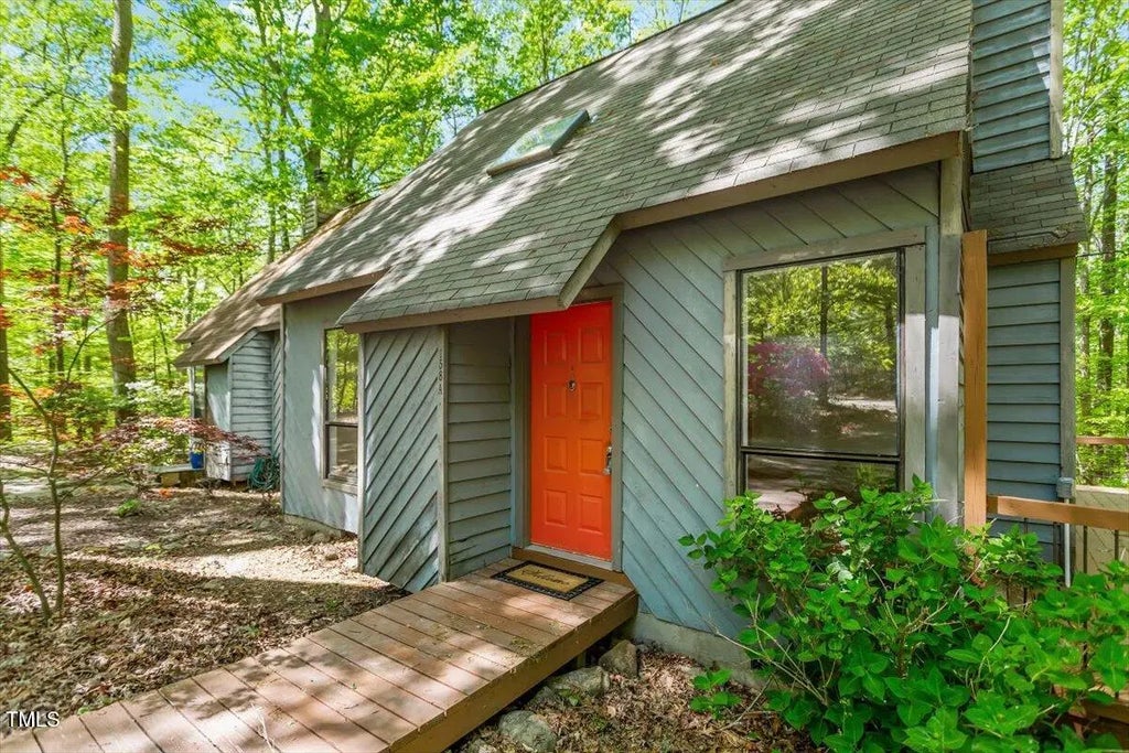 Siding repairs made! New Carpet Installed! $5,000 Seller Concession! Enjoy the privacy and seclusion of nature on a quiet street just far enough away from the hustle and bustle! This 3 bedroom, 1.5 bath duplex with its own private driveway is situated on 3/4 acre and only a 15 minute drive to Carrboro/Chapel Hill UNC or Pittsboro, 30 minutes to Durham, or 45 minutes to downtown Raleigh. A grocery store and restaurants are also conveniently located less than a mile away. Nestled amongst the trees on your expansive deck or around your cozy fire-pit, you'll enjoy the sights and sounds of nature -- owls, deer, butterflies, and hummingbirds have all been spotted! A large outdoor shed with its own porch provides ample space for garden storage, a workshop, or an art studio; with NO HOA and no restrictions, the possibilities for this property are endless! AT&T gigabit fiber available for super-fast internet! House is wired with ethernet.
