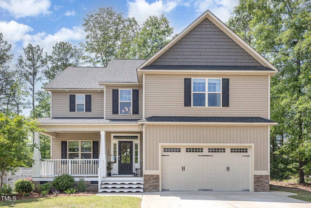 In the desirable Cleveland Area, just a minute or two from Cleveland School. This beautifully updated 4-bedroom, 2.5-bathroom home offers a spacious, functional layout with fresh, modern finishes throughout. The main floor features brand new LVP flooring, fresh designer paint, elegant crown molding, and a custom built-in feature wall in the family room—perfect for both everyday living and entertaining. The kitchen is a standout with granite countertops, stainless steel appliances, and a large island that flows into open living and dining spaces. Upstairs, you'll find four well-proportioned bedrooms, including a generous primary suite with dual walk-in closets, double vanities, soaking tub, and walk-in shower. Enjoy outdoor living with a covered rear patio, separate grilling area, and fully fenced backyard. A rocking chair front porch and two-car garage add to this home's appeal. Move-in ready and thoughtfully updated. This home is a must-see.