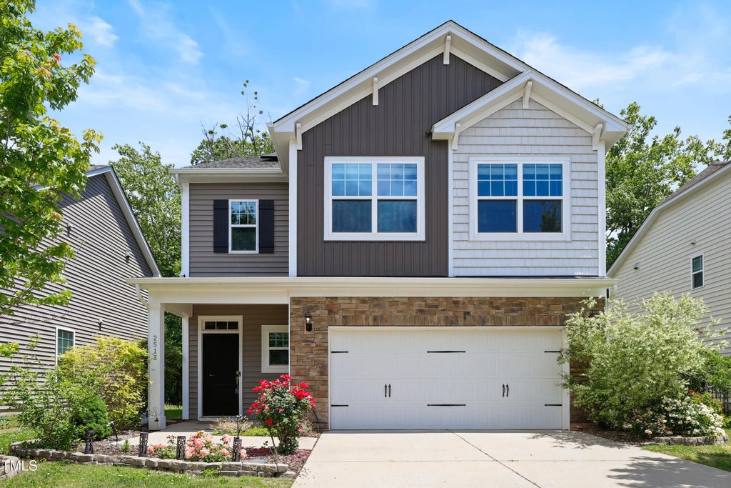 Neighborhood pool, tons of upgrades, paid off solar panels, new HVAC! This home has it all! You will be amazed at your average electric bill of just $16 monthly - that's over $2,000 in annual savings compared to typical Durham homes. Step inside to discover multiple upgrades complemented by fresh paint and well-maintained blinds on every window - this home is clean, well-kept and MOVE IN READY. The thoughtfully designed space features an open-concept main floor perfect for entertaining, kitchen with granite, white cabinetry, and a custom designed large pantry, while the upstairs boasts a massive 20x15 primary suite with spa tub and shower, and a huge walk-in closet. So much versatile space - two additional bedrooms, a loft, AND a finished third-floor bonus room provide endless possibilities for a home office, gym, or playroom. Outside, you'll enjoy an extended concrete patio and raised garden beds in a fully fenced yard that backs to mature trees for privacy, all while being part of an incredibly friendly and social neighborhood. Best of all, the remarkably low HOA fee of just $60 monthly includes access to a beautiful community pool and playgrounds, making this an unbeatable value in a welcoming community. Located minutes from Research Triangle Park, Brier Creek shopping, and downtown Durham, this move-in-ready home includes owned solar panels, washer and dryer, all custom shelving and fixtures, and that valuable 10-year HVAC warranty - truly a smart investment in your future with ultra-low utility costs and premium upgrades.
