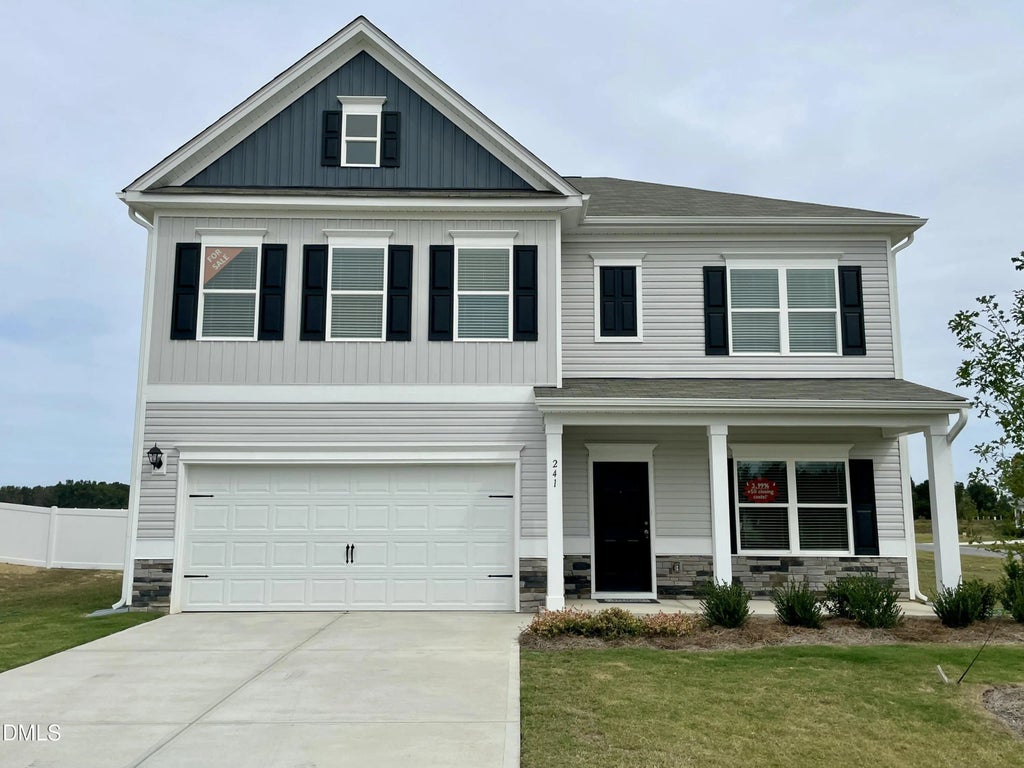 Smith Douglas Homes is proud to introduce the James C plan at Liberty Creek. This exceptional, open-concept home is nestled on a spacious .754-acre, corner lot and boasts a wealth of premium upgrades that seamlessly combine sophistication with everyday functionality. The main level features an elegant formal dining room, perfect for hosting guests, while the chef-inspired kitchen is a standout with its expansive island, high-end countertops, and custom cabinetry with refrigerator included. Offering four generously proportioned bedrooms, this home provides abundant space for all. Downstairs has a bedroom with en suite full bath. The expansive upstairs primary suite, complete with a private sitting area, serves as a tranquil retreat. The adjoining bathroom is a true oasis, featuring an upgraded double vanity and a separate shower, ensuring a spa-like experience. Located in a highly sought-after area with easy access to Raleigh, this home offers the ideal balance of modern luxury and convenience, set in an exceptional environment. House blinds now included.