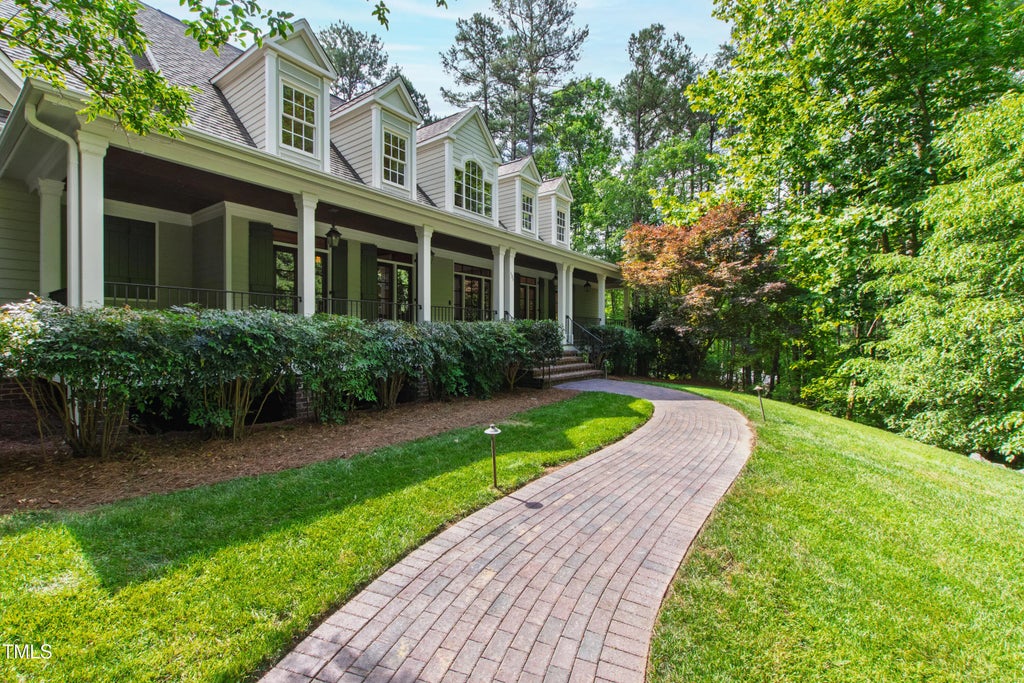 Welcome to an unparalleled custom-built masterpiece, gracefully situated on 3.25 serene acres within The Shire, an exclusive enclave of only nine homesites spanning over 90 wooded acres. Enjoy the tranquility of a private estate, mere minutes - just four miles - from the vibrant heart of Downtown Chapel Hill, UNC Hospital, and Carrboro. Step inside and be captivated by a residence that has been meticulously maintained and thoughtfully designed. Grand vaulted ceilings, dazzling chandeliers, and a magnificent staircase immediately evoke a sense of refined opulence, while an abundance of bright, open windows bathes the interior in natural light. The gourmet kitchen is a chef's delight boasting Silestone countertops, gas range, a double oven, a generous walk-in pantry, a built-in Miele coffee machine, and a discreet butler's pantry - making entertaining an absolute breeze. Memorable gatherings will be a delight to host in the separate formal dining room. A recently added main-level primary suite features vaulted ceilings, private wooded views, an elegant primary bathroom with a walk-in shower, large soaker tub, and an expansive walk-in closet. The cozy sitting room with gas fireplace and plentiful storage possibilities sets the perfect tone for a relaxing oasis. The bright sunroom provides a picturesque vantage point, overlooking your sprawling private lot and the inviting in-ground pool. Upstairs, a second main suite truly defines sanctuary with a cozy fireplace, leading to a bright, luxurious bathroom appointed with both a rejuvenating walk-in shower and a deep soaker tub. Two additional spacious bedrooms and a versatile bonus room offer endless possibilities for recreation, a home theater, a private gym, or additional personalized living space. Outside, the fenced backyard is an entertainer's paradise, complete with a heating-capable pool, and breathtaking private views. Seamless indoor-outdoor living is perfected with a charming screened back porch and an additional covered porch. Beyond its beauty, 131 Lavinia offers unmatched convenience, located directly off Highway 54 for swift access to local hospitals, UNC, Chapel Hill/Carrboro, and major highways. Modern amenities abound, including a comprehensive security system, central vacuum system, a fully integrated home entertainment center encompassing the entire home, a rain-sensor irrigation system, and a reliable backup generator. This residence isn't just a home; it's a lifestyle of sophistication and comfort, meticulously crafted for discerning tastes.