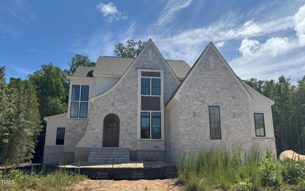 This thoughtfully designed, custom-built home by award-winning Triple A Homes sits on a beautiful wooded lot at the end of a quiet cul-de-sac in the Estate Section of Ryan's Crossing, offering privacy, quality craftsmanship, and a true sense of peace. A dramatic two-story foyer fills the home with natural light and sets the tone for the open, welcoming layout. The main level includes a private guest suite, dedicated office, and a serene primary suite. The spa-like primary bathroom feels like a retreat, with an arched entry that leads to a zero-entry shower blending comfort, style, and ease of use. The kitchen was designed with both beauty and function in mind, featuring a large scullery and a natural flow into the main living areas perfect for gathering or entertaining. A spacious laundry room and mudroom with custom cubbies make everyday living easy and organized. Outside, a screened-in patio with a fireplace offers a quiet spot to relax or entertain while taking in the peaceful, wooded surroundings. Upstairs, flexible spaces give you room to adapt whether for a media room, playroom, workout space, or second office plus two more bedrooms joined by an extended Jack-and-Jill bathroom. Ryan's Crossing is a premier new home community near Chapel Hill. Enjoy the best of both worlds: proximity to the conveniences of Chapel Hill and Pittsboro, coupled with the serene beauty of 114 wooded acres. The community plans to offer scenic trails, a yoga pavilion, and more. Note: Since this is new construction the square footage is based on architectural drawings. Photos provided are for illustrative purposes only.