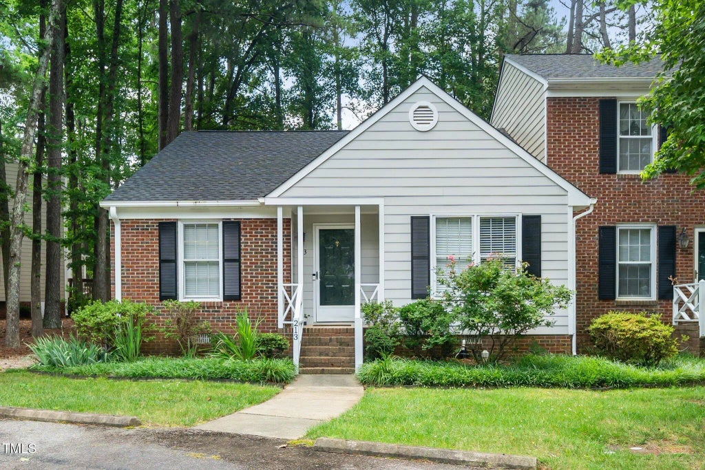 Price reduced! Cute as a button ranch style END UNIT townhome in desirable Newton Parish. Nestled among nature in the heart of North Raleigh, a short 10 minutes from countless shopping & dining options of North Hills. Whole Foods 2 miles up the road. 2 generous bedrooms, both with adjoining full baths. Large, light-filled kitchen w/ breakfast nook and chair rail. Wood burning fireplace in spacious living area. Enjoy morning coffee or grilling on the peaceful back deck. Refresh in the community pool after a game of tennis! Roof and siding, covered by HOA, replaced in 2023. Washer/Dryer & Fridge convey. Welcome home!
