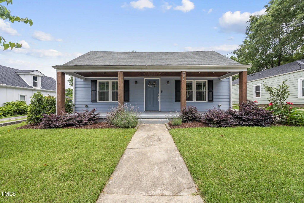 VINTAGE MILL VIBES JUST MINUTES TO DOWNTOWN. This updated vintage mill home blends historic charm with modern updates—and it's just a quick bike ride to downtown Raleigh! All the hard work's already been done, so you can step right into easy living and effortless entertaining, downtown style. Inside, you'll find fresh paint throughout and sleek new LVP flooring that ties the open floor plan together. The kitchen has tons of cabinet space, a gas range, quartz countertops and a center island that's perfect for casual meals, coffee chats, or catching up over a glass of wine. Out back, your private escape awaits—featuring a locally designed patio, landscaping, and firepit by Currin Outdoor. There's brand new fencing, garden space, privacy trees and shrubs that still give you a peek of some Downtown views. A large, detached storage building for all your gear, tools, or hobbies. Location? Spot on. Walk to Trophy Brewing on Maywood, the State Farmers Market, or explore the endless green space at Dorothea Dix Park and the brand-new Gibson Play Plaza. Swing by the South Saunders district for eclectic eats and one-of-a-kind shops, or hop downtown in minutes—by car or by bike. There's even a quiet neighborhood park just down the street with a playground and green space. New nearby development adds even more buzz with local restaurants and community favorites popping up around you. This is the perfect mix of character, comfort, and connected living—ready for its next chapter.