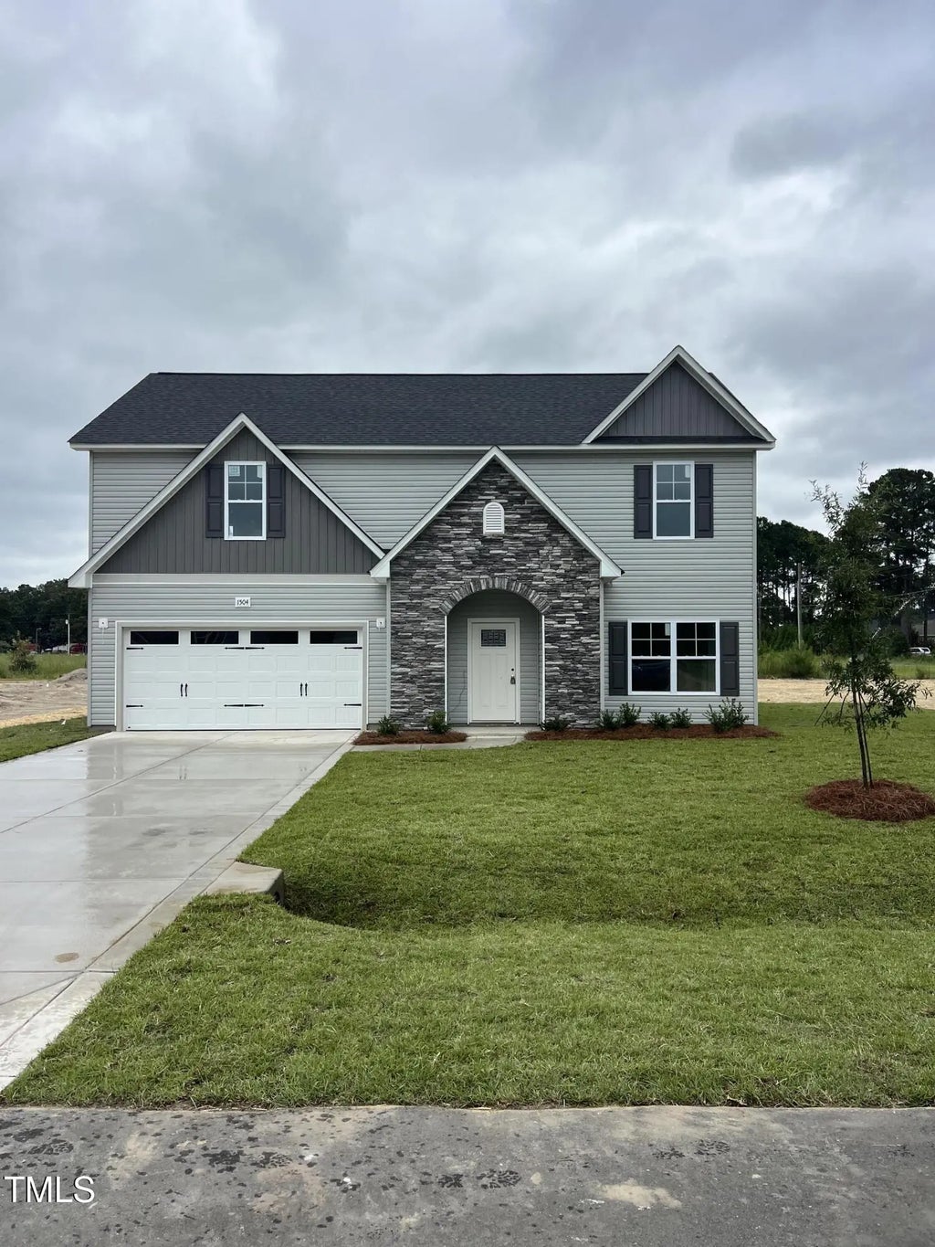NOVEMBER MOVE-IN, NO CITY TAXES! Golf club adjacent community with 1 year Builder offered golf, tennis & pool access. This show-stopping new construction home has it all! The Hickory Plan Features a great room with electric fireplace open to the luxury kitchen equipped with a HUGE walk-in pantry, SS appliances, ceramic subway tile backsplash and Island for generous storage and prep space. The Dining area overlooks your backyard and opens to your coffee bar and SCREEN PORCH. This 3 bed, 2.5 bath home ''lives'' like a 4 bedroom, with a Bonus Room and Storage Closet. Upstairs you will find a primary suite with dual closets and vaulted ceiling, airy second floor laundry, and two spacious bedrooms + bonus room. Enjoy LVP on the main level and ''wet'' areas, Mohawk carpeting, quartz counters in baths & tile shower with soap niche. Modern Fixtures and Millwork. Included community upgrades: bedroom ceiling fans, painted garage, stone accent, 30-yr architectural shingle, backsplash, window screens, LED lights, trim. Baywood Terrace is located convenient to Highway 95 & 295, easy access to Base, Shopping, Dining. Highly coveted Cape Fear High School.