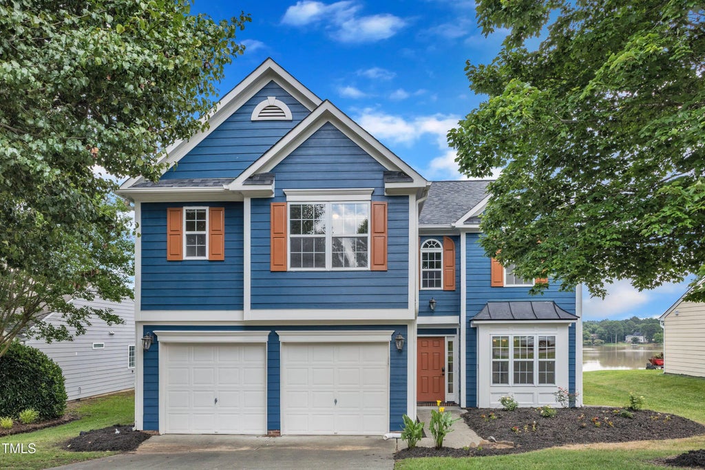 LAKEFRONT LIVING with UNMATCHED COMMUNITY AMENITIES! Welcome to your lakeside retreat in one of Durham's most amenity-rich communities! This beautifully updated home sits directly on the lake — enjoy fishing, kayaking, or even building your own private dock. Step out back and take in tranquil water views every day from your own yard. Inside, the home has been refreshed from top to bottom with brand-new exterior and interior paint, fresh carpet upstairs, and a mix of hardwoods and durable luxury vinyl plank (LVP) flooring throughout the main living areas. The soaring double-height ceiling in the living room adds dramatic space and natural light. The kitchen is a true standout, featuring refaced shaker-style cabinets, gleaming granite countertops, soft-close doors and drawers, and stainless steel appliances — a perfect blend of style and functionality. All bathrooms have been tastefully updated to match the home's modern, cohesive look. Enjoy the benefits of pre-installed Google Fiber for ultra-fast internet — ideal for remote work or streaming. As a resident, you'll enjoy unbeatable HOA value with access to walking trails, a saltwater community pool, fitness center, playground, lake access, basketball and pickleball courts, volleyball, and year-round neighborhood events. Plus, you're just a short stroll to the public library and only 15 minutes from Brier Creek, RTP, and Downtown Durham. Don't miss your chance to own a move-in-ready, lakefront home with every lifestyle convenience you could want! Seller is the listing agent.