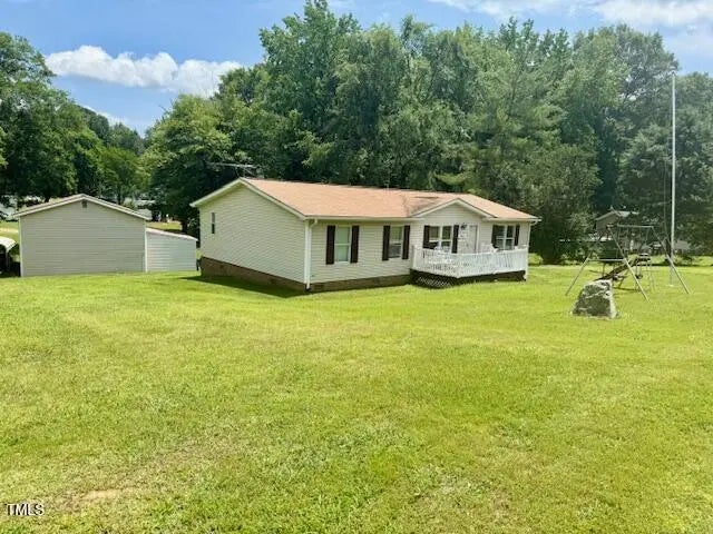 Enjoy KERR LAKE w/ 800 Miles of Shoreline when you buy this 1344 SF, 3 BR, 2 BA well- Maintained Double Wide with its own DOCK plus a Detached 30 x 26 METAL BOAT STORAGE /WORKSHOP / GARAGE. It has 12' Tall x 18' Wide Door & Heated by Wood Stove + has two extra storage areas. DW faces Weekender Lane and Back METAL BLD & Concrete Pad come out on S Waters Edge Ln. Seller in process of getting recorded Road Maintenance agreement to transfer at closing so Buyer can use the private Weekenders Ln to get to the Double Wide. This also will help Buyer get financing. Lot 32 has .61 Acres with a cart path leading through Corp Land to its wooden DOCK, permit number 1464. DW comes furnished with Beds, Mattresses, Chester Drawers and bedside tables, Kitchen Table & chairs, Washer and Dryer , Refrigerator , Dishwasher. and FP 32x12 SCREEN back porch and 16 x 8 front porch plus swing set ! Metal carport does not convey and will be moved before closing. $299K