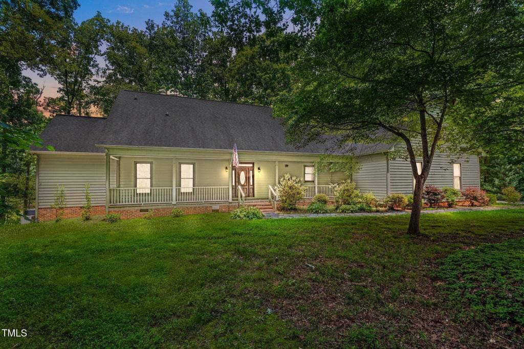 This private retreat in southern Alamance County spans 36 secluded acres, just 20 minutes from Burlington and Saxapahaw, and within convenient reach of RTP and Triad airports. The scenic meandering driveway follows a small creek and leads to a rustic-modern 3-bedroom home with a bonus room, over 3,400 sq. ft. of living space, expansive decks, covered front porch, a screen porch, and serene views of a shared pond and nature. Highlights include: Great room with 18-ft ceilings, stone fireplace, and wall of windows. Internet Fiber available through T-Mobile, formerly Lumos! Renovated master ensuite and updated kitchen with custom cabinetry, granite, stainless appliances, and Wolf range. Attached (40' x 24') 2-car garage, detached 3-bay shop, and generator. The adjacent 8.12 acre parcel will be offered first right of refusal to the buyer of this parcel. $190.000 and includes driveway, well & septic.(mls 10114379) Exterior siding needs some paint/TLC. Perfect for those seeking a peaceful nature retreat with modern comforts.