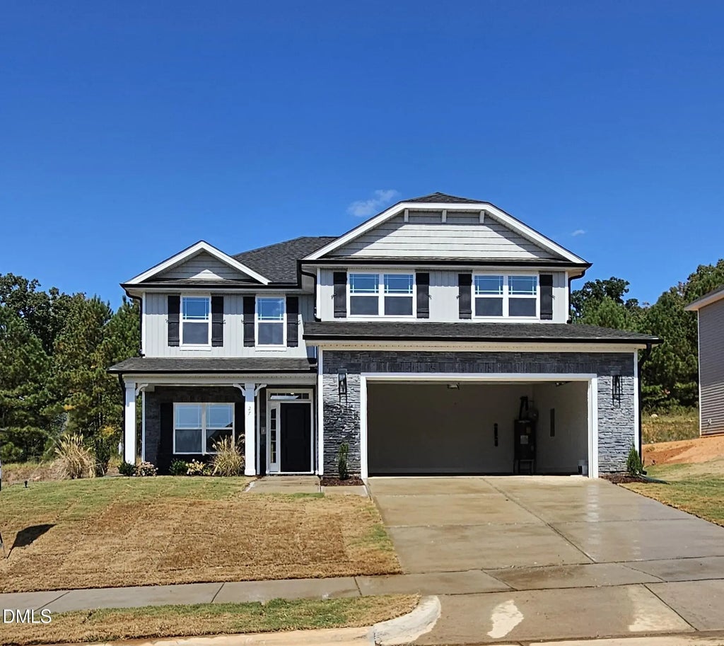MOVE IN NOW!! Nothing but the best! This two-story home features 5 bedrooms, 3.5 bathrooms across 2,628 square feet. At first sight you will be swept off your feet by the charming stone, vinyl exterior and the covered porch! Upon entering, you'll immediately notice the thoughtfully designed layout. First floor features an entry foyer, 9 ft smooth ceilings throughout the home and upgraded laminate flooring in the main living areas. You will adore the formal dining room with its trey ceiling, crown molding and wainscoting. Connecting to the modern kitchen featuring quartz countertops, Herringbone ceramic tile backsplash, kitchen island, upgraded stainless steel appliances and a window above the sink for bird watching.. Step across the cozy living area featuring an elegant gas fireplace, recessed lighting and ceiling fan to find the generous first floor primary bedroom. You will adore the trey ceilings, crown molding, recessed lighting, ceiling fan and walk in closet. The Primary bath is a step into luxury with its ceramic tile shower, garden tub for soaking after a long hard day, double vanities and a water closet. Exploring upstairs you will find 4 additional bedrooms with ample closet space, 2 full bathrooms, laundry room and a spacious bonus room. The home also features a finished two car garage with door opener and a captivating Covered Back Patio for those serene North Carolina nights. NO CITY TAXES, City Water & Sewer and all this just 12 minutes from downtown Fuquay Varina! We do not sell to investors!