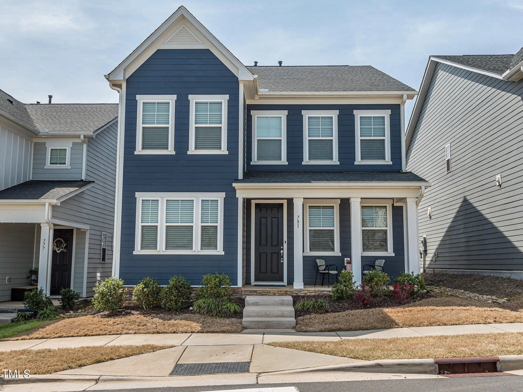 This exceptional 4-bedroom residence features a refined office/study with French doors and a loft on the second floor. Located in the sought-after Devon Square subdivision, it offers convenient access to various shopping destinations and dining establishments. A greenway trail connects to nearby Joyner Park, providing additional recreational opportunities. The gourmet kitchen is integrated with the dining area and living room. It boasts a substantial island, gas cooktop stove, quartz countertops, built-in oven and microwave, as well as a sizable walk-in pantry. The downstairs bedroom includes a walk-in closet, accompanied by a full bathroom situated across the hallway. The living room is welcoming and features a natural gas fireplace, while the bright dining area opens to the screen porch. Upstairs, there is an expansive loft that can serve as either an exercise space or a secondary living room. Adjacent to the stairway are two bedrooms with a full bathroom in between. The spacious walk-in laundry room is equipped with vented shelving and a utility sink. The Primary Suite is bathed in natural light, offering a serene retreat. The primary bathroom is elegantly designed, and the walk-in closet is generously sized. The detached 2-car garage provides ample space. Tankless Hot Water Heater!