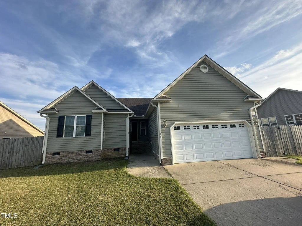 Welcome home to this beautifully maintained 3 bedroom, 2 bath ranch in the desirable Tralee subdivision! This one-level home features a spacious 2-car garage, a fenced backyard, and a bright sunroom perfect for relaxing or entertaining. The kitchen boasts stainless steel appliances, cherry cabinets, a huge pantry, and a kitchen/dining combo that opens to the family room with vaulted ceilings, an entertainment nook, and a cozy gas log fireplace. The primary suite includes his and her sinks, a walk-in closet, and a garden tub. Enjoy upgraded lighting and hardware throughout, as well as gorgeous hardwood floors. Community amenities include a clubhouse and pool. Conveniently located near shopping and dining—this home truly has it all! Tenants responsible for yard maintenance and utilities. Call 919-977-0266 for an application or additional information. Pets ok with deposit