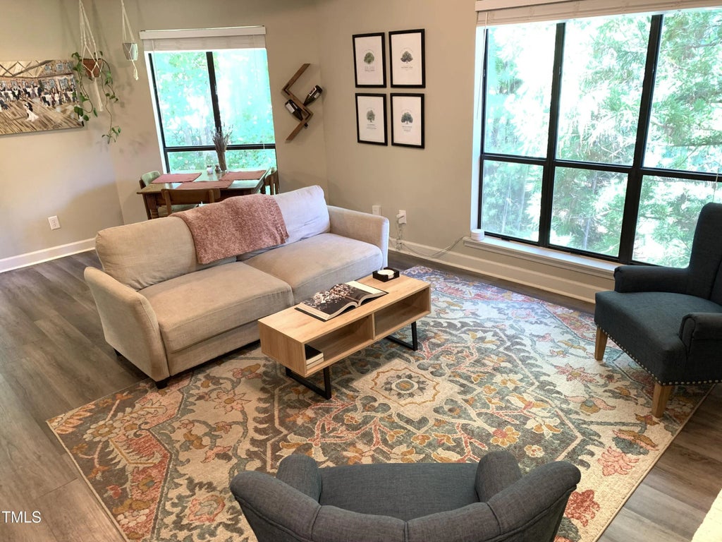 Welcome to this CHARMING 2 bed 2 bath condo in a fantastic CARY location. Walk to Trader Joes, Anytime Fitness, Chipotle, Goodberry's, and so many other restaurants and retail stores. Close to ADORABLE downtown Cary and FENTON. Access to walking trails steps away. Close to NC State, RDU airport, RTP, and medical centers. Great patio space that backs up to trees. Two closets in primary bedroom. Washer, dryer and refrigerator included. Condo features stainless steel appliances, granite countertops, modern LVP floors, microwave, garbage disposal and dishwasher. This community is very popular for its unbeatable location. Owner pays for water and trash service. Tenant responsible for power and wifi. 12 month+ lease preferable. Smoking not permitted in unit. Pets negotiable depending on situation. Monthly income must be 3x rent. $50 pet fee, per month, per pet. Security deposit and 1st month rent due upon lease signing.
