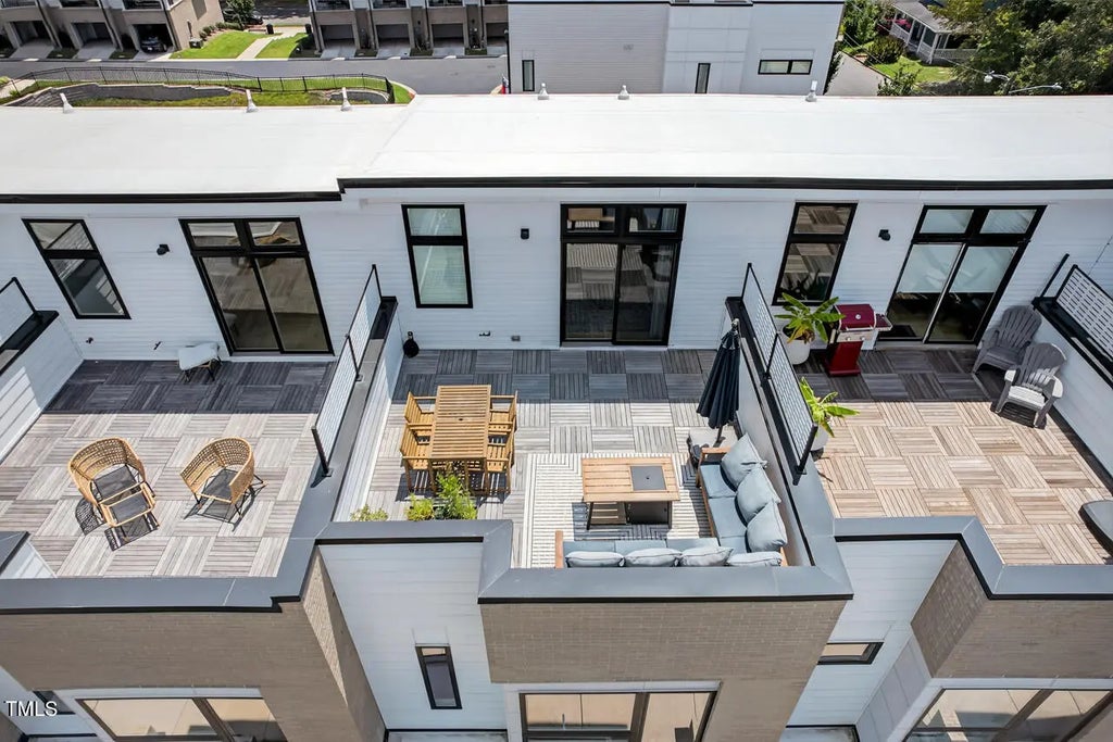 Built in 2021, this stylish townhouse offers the best of downtown living with a sleek, move-in-ready design and premium modern finishes throughout. Perfectly situated just steps from top restaurants, entertainment, and an adjacent dog park, this home blends convenience, comfort, and sophistication. Entertain effortlessly on your private rooftop terrace featuring city skyline views, complete with gas and water hookups for easy outdoor cooking and gatherings. A second covered porch offers even more options for outdoor enjoyment. Inside, you'll find beautiful wood floors, quartz countertops, large windows, and high ceilings that fill the space with natural light. The top-floor bonus flex space easily functions as a third bedroom, home office, or guest suite, giving you the flexibility to adapt to your lifestyle. Additional features include: attached garage wired for EV charging - a rare find in the heart of downtown; spacious open layout ideal for both relaxing and entertaining; and designer finishes throughout for a clean, contemporary feel! This is low-maintenance, high-style urban living at its finest. Don't miss your opportunity to call this exceptional townhouse home!