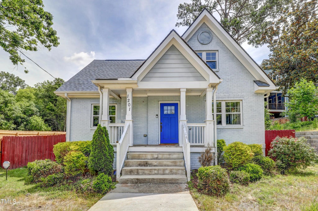 Stunningly charming 4 bedroom, 3 full bathroom home! Main floor offers great room, gorgeous kitchen with stainless steel appliances including gas range, two bedrooms and full bath; bedroom could be used as dining room. Two additional bedrooms on top floor each with private ensuite including huge primary bedroom with walk-in closet, walk-in shower and double vanity, plus ceiling fans in both rooms. Hardwood flooring throughout main living areas and in all bedrooms! Spacious deck and fenced backyard ideal for entertaining! Move-In Ready! Ask about furnishings that are available to convey!