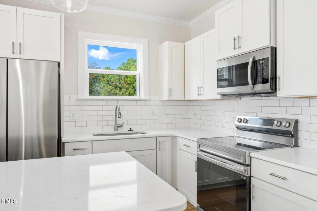 Why settle for a 1-bedroom condo or townhouse when you can have your own 2-bedroom single-family home? Perfect for first-time buyers and investors alike, this modern 2024-built home offers the style and convenience of a condo or townhouse but with no shared walls, no HOA fees, and your own yard (yes you can install a fence!!) Step onto the charming covered front porch with dual entryways and fall in love with the open, light-filled design. One entry leads into a sleek, modern kitchen with a center island, quartz countertops, stainless steel appliances, and ample cabinetry, perfect for cooking or entertaining. The second door opens to a bright and spacious living room, offering a warm and inviting flow throughout the main level. Enjoy meals by the cozy fireplace or create a flexible dining/workspace area, all with durable luxury vinyl plank flooring. Upstairs, you'll find two private bedrooms, each with its own en-suite bathroom, ideal for roommates, guests, or a home office. Upgraded wood shelving in the closets, convenient upstairs laundry, plenty of parking, and a usable yard make everyday living easy and comfortable. Located just 13 minutes from Southpoint Mall, 9 minutes to Downtown Durham, and 18 minutes to RDU! This home delivers modern comfort, great value, and prime convenience. 💰 Seller offering a $1,000 closing cost incentive with an acceptable offer! Don't miss this opportunity, schedule your showing today and see why this home is the perfect step up from condo or townhouse living!