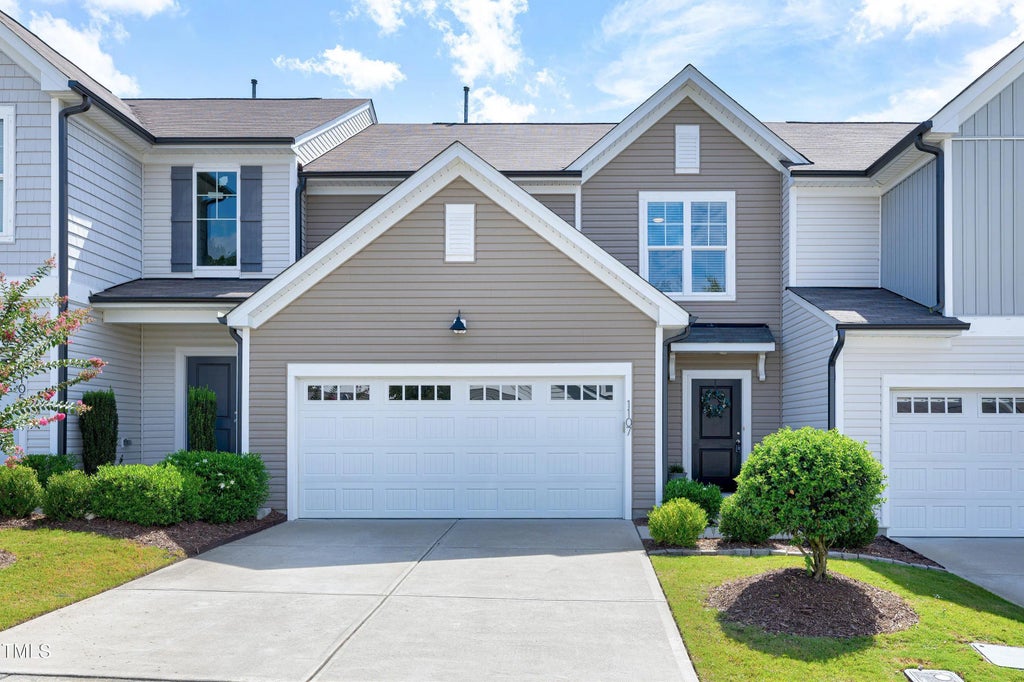 Beautifully upgraded townhome in Durham's popular Lakeshore offers modern design, thoughtful features and low maintenance living. The open main floor features luxury vinyl plank flooring and a spacious family room showcasing a slate-surround fireplace with gas logs. The kitchen is outfitted with upgraded SS appliances, granite countertops, tile backsplash and upgraded cabinetry. Ceiling fans and 2'' faux wood blinds have been added throughout the home. Upstairs, the spacious primary suite boasts a vaulted ceiling, walk-in closet, and a luxurious bath with a double vanity, granite counters, large shower with bench and a private water closet. Two additional bedrooms and full bath provide flexible space for guests, work or hobbies. The upgraded carpet on the second level adds warmth and comfort. Enjoy relaxing or entertaining outdoors on the expanded patio. The two-car garage connects directly to the kitchen for easy access. Lakeshore offers fantastic amenities including a pool, pavilion, dog park, lake, and playground—all with yard maintenance included in the HOA. Close to shopping, dining, and commuter routes, this home offers a great blend of style, comfort, and convenience!