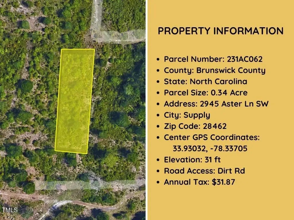 Welcome to 2945 Aster Lane. Vacant lot located in beautiful Marsh Acres. Whether you're looking for a peaceful coastal getaway or a site to build your permanent residence, this property offers the perfect combination of location, convenience and opportunity. Don't miss out - explore the potential of this property and make your vision a reality. Property has been perked and there is water on the property.