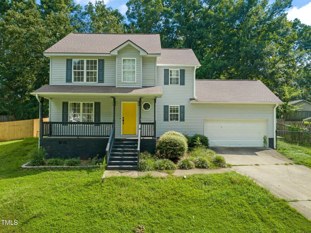 Charming 3-bedroom, 2.5-bath home situated on a spacious .36-acre lot! Step into a bright, open living room with hardwood floors and a cozy gas log fireplace—perfect for relaxing or entertaining. The cook-friendly kitchen features stainless steel appliances, tile flooring, and a breakfast area with access to the back deck. Hardwood floors extend into the formal dining room and upstairs primary suite, which offers a walk-in closet and a private bath with dual vanities. Secondary bedrooms also include walk-in closets for generous storage. Enjoy the large, fully fenced backyard complete with a firepit—ideal for outdoor gatherings. Attached 2-car garage. Convenient to shopping, dining, US-1, and Downtown Sanford. Don't miss it!