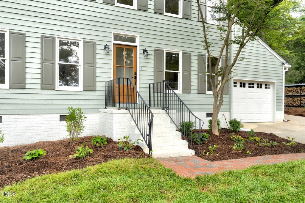 On the edge of beloved Forest Hills, this 1980s two-story has had a stunning glow-up. Designer-selected colors and finishes set the tone throughout. With a highly functional floor plan, the main level offers a cozy living room with fireplace, an open dining area with access to a brand-new deck and patio, an eat-in kitchen, powder room, laundry, and a light-filled den. Thoughtful additions to the kitchen include a high-end microwave drawer, a stylish, moveable kitchen island that conveys, and quartz countertops with a seamless backsplash - outlets are tucked beneath the upper cabinets and a sleek pushbutton at the counter replaces the wall switch for the disposal. The den's cathedral ceilings and natural light make it a perfect flex area for work, relaxation, or entertaining space. Upstairs, you'll find three spacious bedrooms and two full baths, including a bright primary suite with en suite bath. Additional features include a one-car garage that makes pollen-season parking a breeze and fresh sod and new landscaping that bring instant curb appeal, with hydrangeas that will dazzle come spring. The upgrades are extensive: new roof, HVAC, electrical, and ductwork. Refinished hardwoods on the main floor and brand-new hardwoods upstairs and in the den. New kitchen and baths. New appliances. Fresh paint inside and out (on the cedar siding). New wooden front door and exterior doors, new brick walkway with wrought iron accents, and new garage door and back door in the garage to provide easier access to the kitchen. Multiple trees were removed to open the lot, while mature hardwoods remain to preserve the neighborhood's old-charm character. And the cherry on top? Conveniently close to Durham favorites like Nuvo Taco, Beer Study, Thai Café, and more.
