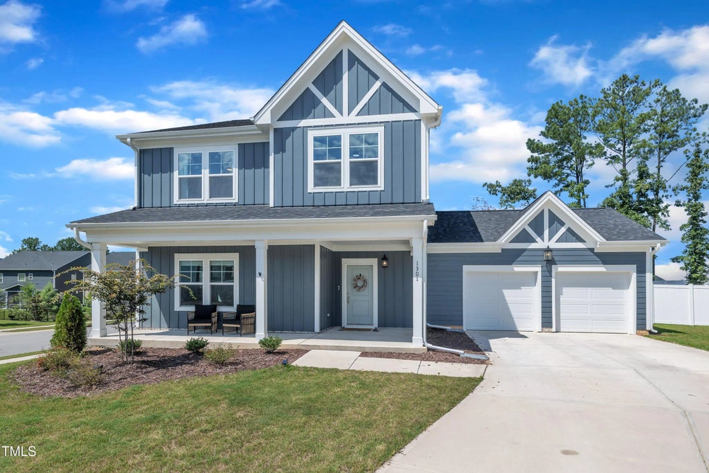 Price Adjustment on 1301 Rose Finch Circle in the desirable Elizabeth Springs neighborhood of Wake Forest. Come and this out this one-year-old home that offers 4 bedrooms, 3.5 bathrooms, and a spacious bonus room with a closet that could serve as a 5th bedroom, home office, playroom, or theater. Situated on a corner lot, this property is filled with thoughtful upgrades and modern finishes. The main level offers a first-floor primary suite filled with natural light from multiple windows, a spacious walk-in closet, and a beautifully designed bathroom featuring a sliding barn door, double vanity, and custom tile shower. Crown molding enhances the main living areas, while luxury vinyl plank flooring runs throughout with no carpet. The gourmet kitchen showcases quartz countertops, a large island, upgraded lighting, soft-close cabinets, and a gas range. For added convenience, an exterior gas line provides a direct hookup for your grill, making outdoor entertaining effortless. Upstairs you'll find three additional bedrooms, each with a large closet, along with two full bathrooms and a flexible bonus room with a closet that can adapt to your needs. The fully fenced backyard includes a covered porch and an extended paved patio, perfect for relaxing or entertaining. Additional features include a two-car garage, community pool, and greenway access, all in a convenient Wake Forest location close to shopping, dining, and schools.