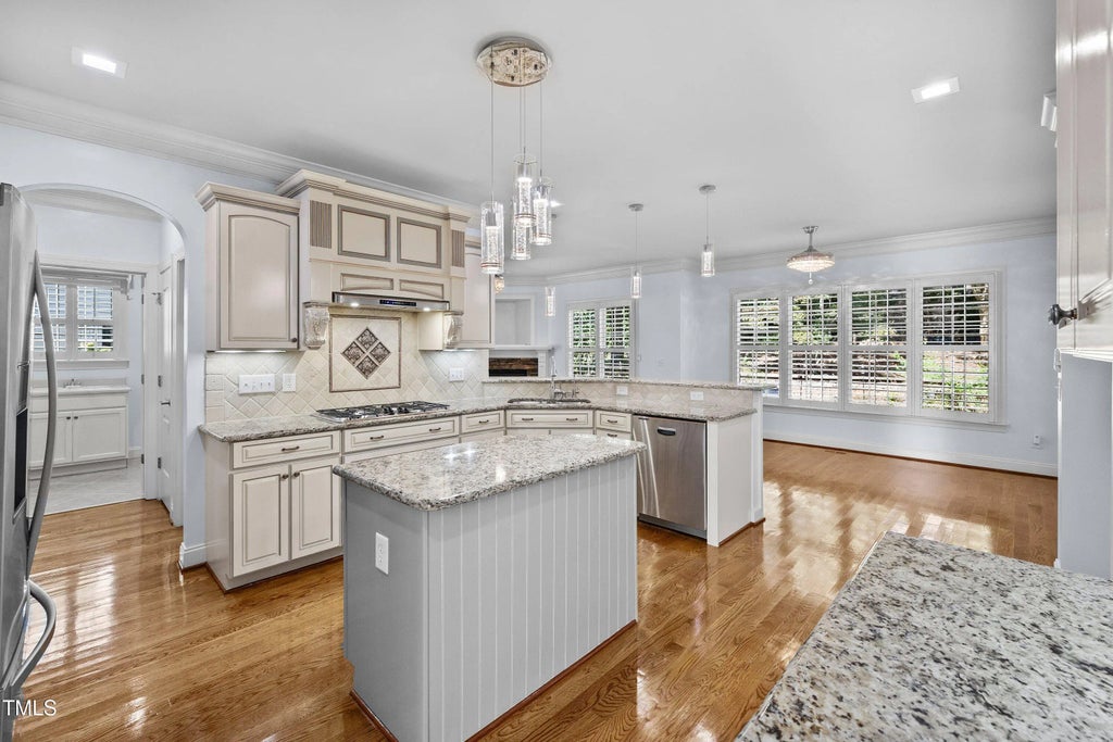 ELEGANT & TIMELESS LIVING! Welcome to this stunning residence that blends elegance, comfort and thoughtful design. From the moment you arrive the stone entrance sets the tone for what's inside. Step through the double beveled glass doors into a soaring foyer with gleaming hardwood floors and you'll immediately sense the care and craftsmanship throughout. This home offers 4 spacious bedrooms and 3.5 baths. Just off the foyer, the formal dining room impresses with its crystal chandelier, double tray ceiling and intricate inlaid hardwood flooring, a perfect setting for memorable gatherings. The chef's kitchen is a dream, featuring custom painted cabinets with soft-close technology, pull out shelves, granite countertops and stainless steel appliances including a 5-burner gas cooktop with vent hood, wall oven, touchless faucet, water filter and designer lighting over the counter seating. Adjacent is a cozy keeping room/family room with fireplace and wet bar (complete with refrigerator), ideal for both everyday living and entertaining. The living room boasts a dramatic double height ceiling and flows seamlessly to an enclosed sunroom with a custom painted ceiling that overlooks a stone patio and terraced garden - a lovely, peaceful retreat for year-round enjoyment. The primary suite on the main floor is a luxurious sanctuary with a tray ceiling, spa-style bath with double granite vanity, jetted tub and walk-in shower with rain head and handheld sprays. Water closet and expansive walk-in closet with custom built-ins and shelving. Upstairs, a light filled walkway overlooks the living room and leads to three additional bedrooms, 3 bathrooms (including one en suite), and a bonus room. Also upstairs is a large partially finished storage space with utility sink that offers endless possibilities - crafting, fitness or workshop. Additional highlights include: Two-car garage with rubber tile floor *Conditioned crawl space *Plantation shutters throughout house *Designer lighting in formal rooms *Multiple safety and comfort features thoughtfully integrated. This is more than a home, it's a statement of style, comfort and lasting quality! More photographs to follow.