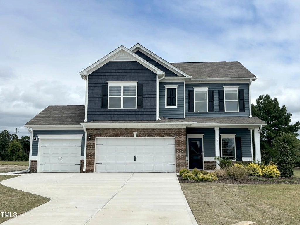 Smith Douglas Homes presents the Coleman D plan in Harrington Place. Don't miss the opportunity to own this beautifully upgraded former MODEL HOME, showcasing style and comfort throughout. The kitchen features stainless steel appliances, including a side-by-side refrigerator, while the family room offers an electric fireplace and an added window for extra natural light. Elegant touches include 2-piece crown molding in the main living areas, a tray ceiling with 1-piece crown molding in the owner's suite, and additional 2-piece crown molding in the suite for a refined finish. The owner's suite is a retreat with upgraded details, and convenience is found throughout with front-load stackable washer and dryer included. Enjoy outdoor living on the covered patio with a firepit, perfect for entertaining. Blinds are already installed on the main floor for added comfort and privacy. A spacious, insulated 3-car garage with a utility service door adds practicality and storage. Luxury vinyl plank flooring runs throughout the main living areas, blending durability with modern style. This home is move-in ready with thoughtful upgrades at every turn. Plan your future in this quaint community featuring a walking trail and pond, close to major highways, with large lots providing comfort and privacy.