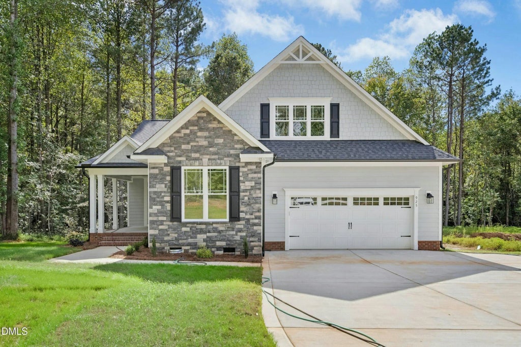 Stunning 3BR/3BA home with bonus & 2 car garage! Spacious kitchen boasts built-in oven, gas cooktop, tile backsplash, large island & abundant cabinetry. Expansive living area features custom built-ins, gas log stone fireplace & accent beams. Primary suite offers tray ceiling w/ accent lighting, spa-like bath w/ tile shower (bench, rain & handheld heads), dual sinks & his-and-hers closets w/ wood shelving. Secondary bedrooms are generously sized. Large bonus w/ full bath & closet—perfect for guests or media. Enjoy outdoor living on the huge partially covered deck overlooking a private wooded backyard. LVP flooring in main living areas & primary suite + thoughtful details throughout*Conveniently located near Flowers Crossroads, you'll find Publix, Harris Teeter, dining, and shopping just minutes away!