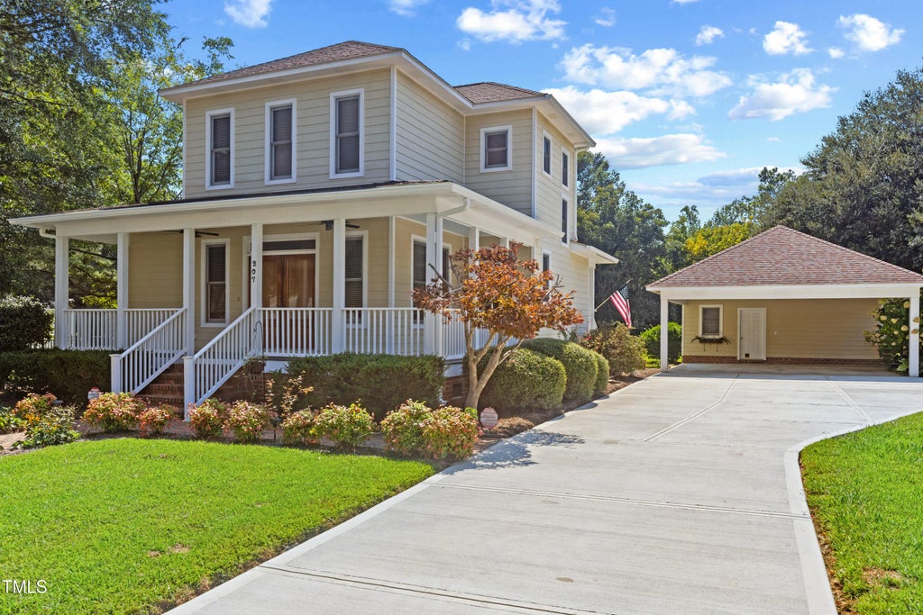 Elegant & Timeless! This 3-bedroom, 3-bath home sits on a private .52-acre lot in the historic town of Spring Hope. Built with classic details that reflect its era, it offers both charm and character throughout. The main level includes a guest bedroom with walk in Closet and Full Bathroom, while the spacious family room features true hardwood floors with gas log fireplace and plenty of space for a home office. The kitchen has an abundance of cabinets and counter space, gas cooktop, spacious pantry, stainless steel appliances and a window over the sink. A spacious breakfast bar with seating for up to four stools, complemented by a generous breakfast nook that can easily accommodate a large farmhouse table and hutch. The kitchen is just steps away from the large separate laundry room and the covered back porch. The expansive backyard offers endless possibilities—with plenty of room for a pool! Turn the 24x9 Workshop off the Detached Carport into a Pool House. Upstairs, the spacious primary suite includes a private bath with a relaxing Jacuzzi tub and separate shower. The second upstairs bedroom also offers the convenience of its own en-suite bath. Freshly Painted Interior, Solid Wood interior doors, Crown Molding throughout the Main Level, Freshly Poured Concrete Drive, New Gutters, New Upstairs HVAC Unit, Hot Water Heater less than one year old. Transferable Home Warranty. Spring Hope is home to the annual Pumpkin Festival, a beloved tradition for over 50 years, and is now welcoming an exciting wave of new shops and restaurants to the area.
