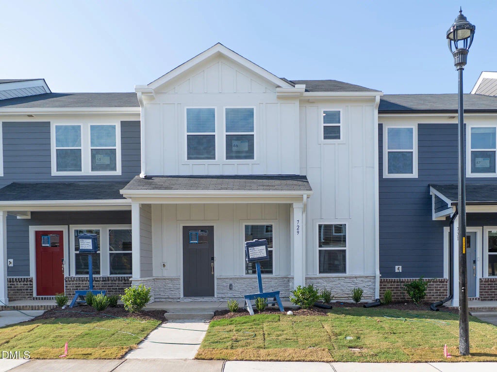 Check out this brand-new townhome just 35 minutes from downtown Raleigh! Zoned to the desirable Wake County school district, Energy Star Certified construction means real comfort and savings in this luxurious two-story plan. Ready in October, come see why the Thorton is a favorite! Enjoy a morning coffee on your covered front porch, or indulge in your favorite meal prepared in the chef-inspired kitchen. A large kitchen island anchors a living space perfect for hosting guests, while an upstairs loft means space for everyone. An expansive primary suite features a tiled walk-in shower and spacious walk-in closet to simplify busy mornings. Almond cabinets, marble-look white quartz countertops, blonde EVP flooring with beige carpet in our Essence package. Living in Cadence Meadows means more than just a beautiful home—you'll enjoy onsite amenities such as a pool, clubhouse, dog park, walking trails and more - perfect for relaxing or meeting neighbors. Plus, with tons to see and do right around the corner in downtown Zebulon and Wendell, it's hard to be bored here!