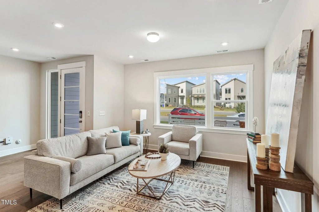Live Brightly in the Sampson Plan at NoVi at the Park NoVi at the Park isn't just Pittsboro's newest neighborhood, it's the heartbeat of Chatham Park's next chapter. And at its center, the Sampson Plan delivers a home that blends modern design, everyday comfort, and the kind of lifestyle today's buyers crave. Step inside and you'll feel it instantly: wide-open living areas that flow with ease, natural light pouring in from every angle, and details crafted to inspire. The kitchen is a true showpiece, featuring crisp Winstead white cabinetry, Noble Grey quartz countertops, and a dramatic waterfall island. A Revalia Remix White designer backsplash, 36'' GE gas cooktop, double wall ovens, and stainless steel hood transform everyday meals into culinary moments, while bold pendant lighting adds the perfect touch of personality. The great room extends effortlessly outdoors, opening directly to the Mews courtyard, a green oasis designed for connection. Imagine morning coffee as the neighborhood comes alive, afternoons filled with play and laughter, or evenings under the stars with friends. It's not just a backyard; it's your front row seat to a vibrant community lifestyle. Upstairs, the primary suite becomes a spa-like retreat with a sleek black hex-tile shower pan, matte black Delta Trinsic fixtures, and quartz countertops, paired with elegant lighting for a look that's both modern and timeless. With three bedrooms, two and a half baths, and a flexible loft, the Sampson adapts effortlessly, whether it's a media lounge, home office, or guest suite. At NoVi, trails, greenways, and the brand-new YMCA are steps away, while Pittsboro's small-town charm and the Triangle's big-city energy are always within reach. This is more than a home, it's a lifestyle. Schedule your tour today and see why the Sampson Plan at NoVi is where bright living begins.