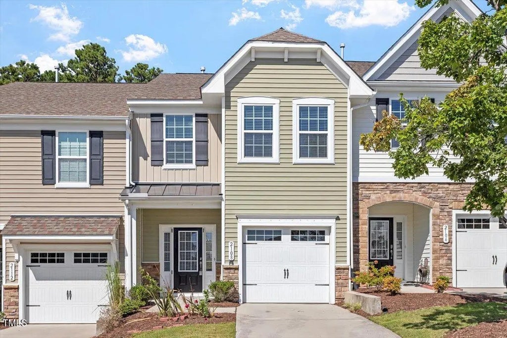 This beautiful 3-bedroom, 2.5-bath townhome, 1 car garage offers a warm and inviting atmosphere. The thoughtfully designed kitchen is a standout feature, boasting granite countertops, a vented exhaust, tile backsplash, and open sightlines to the dining and living areas with fireplace—perfect for entertaining. Enjoy the rare privacy of a backyard, ideal for relaxing afternoons or weekend get-togethers. Additional perks include extra storage under the stairs and extras shelves in garage, long driveway and conveniently located guest parking just steps away. Community has club house, pool, play ground. Situated minutes from major highways, Research Triangle Park, scenic walking trails, green spaces, shopping, and dining—this home combines comfort with unbeatable convenience.