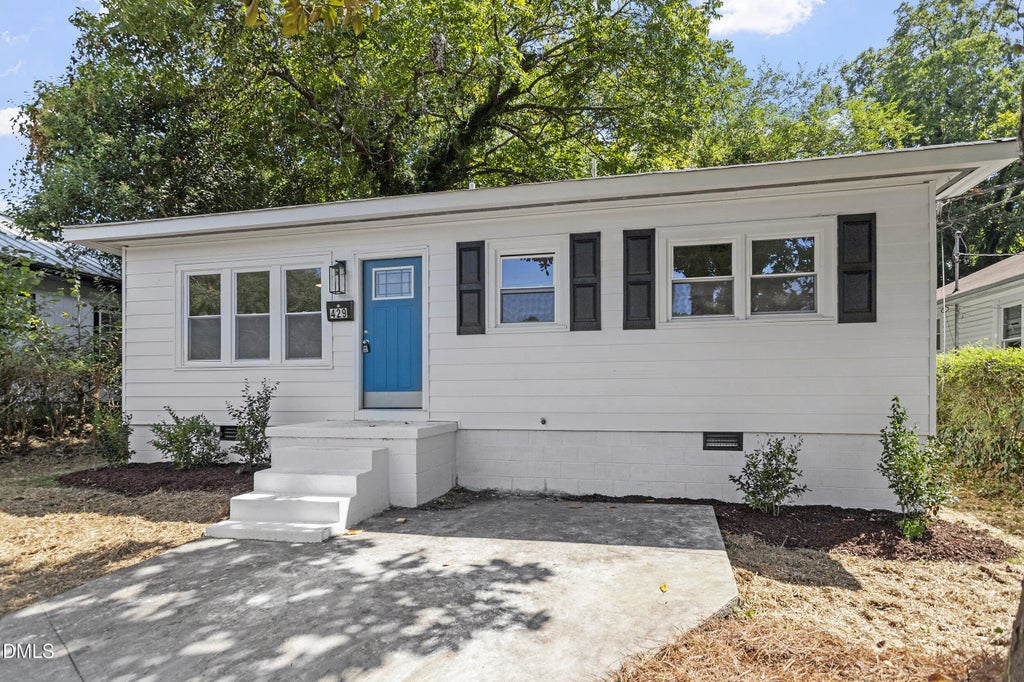 This beautifully updated ranch home features modern upgrades throughout. Enjoy new engineered wood flooring in the main living areas and plush carpet in the bedrooms. The kitchen shines with new shaker cabinets, quartz countertops, a stylish tile backsplash, and stainless steel appliances. The bathroom has been refreshed with new tile floors, a custom vanity with quartz top, and a new tile shower surround. Fresh paint inside and out, along with smooth ceilings, gives the home a bright, move-in ready feel. Conveniently located just minutes from downtown Durham, this home combines comfort, style, and location.