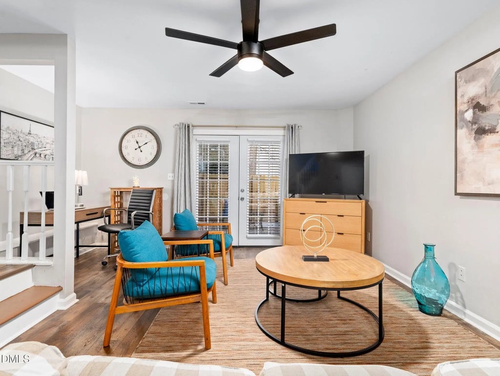 Welcome to our charming, spacious two-story home that boasts comfort, convenience, and a warm ambiance, ensuring a memorable stay for you and your loved ones. With two bedrooms on the 2nd floor this house provides ample space for relaxation and rejuvenation. The first bedroom features a serene king-sized bed, offering a luxurious retreat after a long day of hardwork or exploring the city. The second bedroom offers a comfortable queen-sized bed, providing a peaceful haven for a restful sleep. All bedrooms include closets, allowing you to keep your belongings organized and easily accessible. The one-and-a-half bathrooms in the house offer convenience and style. The bathroom includes a tub-shower combo, a vanity, and a mirror, ensuring a refreshing and enjoyable bathing experience for all guests. Indoor amenities add to the comfort of your stay, with ceiling fans in both bedrooms and the family room providing a cool breeze during warmer days. The flooring throughout the house is EVP (Engineered Vinyl Plank), lending a touch of elegance and durability to the space. The galley-style kitchen is a culinary haven equipped with sufficient counter space and convenience. It is fully stocked with all the essentials, including a full-size fridge and a microwave, allowing you to cook and prepare meals with ease. The dining table comfortably seats four people, providing a cozy spot to enjoy delicious meals and engaging conversations with your loved ones. The living room is a welcoming space that can accommodate up to five to six people. With comfortable seating and a warm ambiance, it is the perfect place to unwind and create lasting memories with family and friends. Step outside to the back patio and soak up the sun, or enjoy a morning cup of coffee in the natural surroundings. The home has 2 assigned parking spaces ensuring convenient parking for you and your guests. In the vicinity of the house, you'll find a variety of nearby restaurants. Explore the local dining scene and indulge in a wide range of culinary delights, immersing yourself in the flavors of Raleigh. Experience the warmth and comfort of this house and book your stay now to enjoy the beauty and charm of this vibrant city!