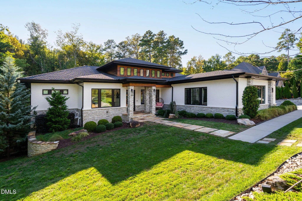 Listing hosted by Deb Chadwick 9193490455 with DEBTEAM. Call should you have questions. Elegant Modern Style home with views of a forested backyard and Resort-Style Outdoor Living. Welcome to one of the most distinctive estate homes, perfectly positioned in the prestigious Golf Course Community - The Preserve at Jordan Lake. This residence offers an extraordinary blend of refined living, outdoor luxury, and rare panoramic views of a serene escape- creating a setting that's as unique as it is unforgettable. Set on a private 0.62-acre lot that backs to protected HOA space, the home enjoys the privacy and uninterrupted natural beauty. Inside, discover nearly 7,000 square feet of thoughtfully designed living space, filled with natural light with energy efficient Casement Windows and timeless charm from all the decorative wood work seen throughout the home. The open-concept layout is anchored by an impressive kitchen, featuring stunning Quartz countertops, Cabinetry, high-end Stainless Steel appliances and finishes, wolf stove & Subzero Fridge —ideal for both entertaining and relaxed family gatherings.