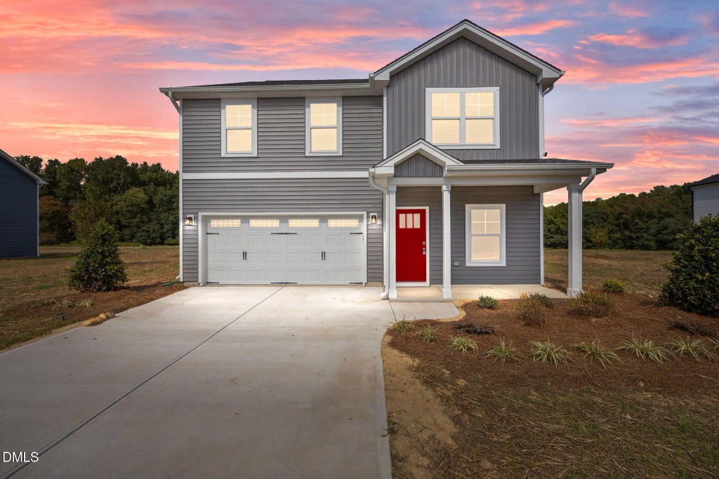 The Armstrong Plan offers a thoughtfully designed layout blending style and function. The open-concept kitchen shines with quartz countertops, stainless steel appliances, upgraded cabinetry, and soft-close drawers, flowing seamlessly into the main living space with durable LVP flooring. A versatile flex room on the main level can serve as a home office, study, or formal dining room—perfect for adapting to your lifestyle. Upstairs, you'll find four spacious bedrooms, two full bathrooms, and a convenient loft area, providing the ideal balance of comfort and flexibility for modern living. Enjoy your patio overlooking your spacious 2 acre lot with mature trees!
