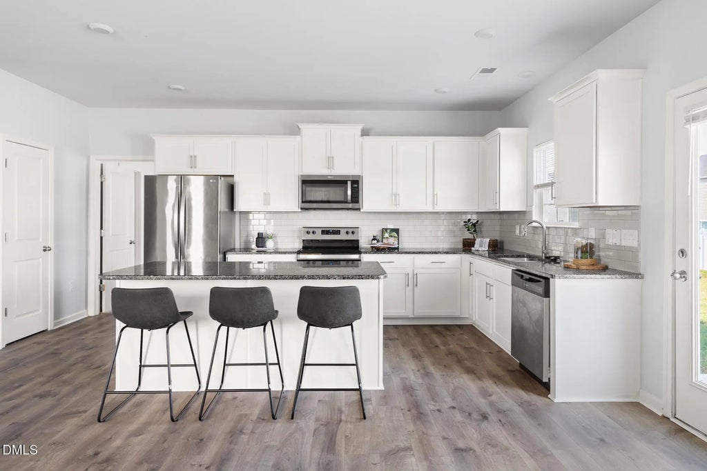 INCREDIBLE VALUE to get 2600 SQFT under $360k!! Welcome to Parrish Ridge! This spacious 4 bedroom, 2.5 bath home offers over 2,600 square feet of comfortable living with thoughtful design throughout. The main-level owner's suite features a large walk-in closet and a spa-like bath with dual vanities and a walk-in shower. The open kitchen is a chef's delight with granite countertops, tile backsplash, stainless steel appliances, and a large island that flows seamlessly into the living and dining areas. A formal dining room makes entertaining easy, while durable RevWood floors throughout the main level add style and function. Upstairs you'll find two additional bedrooms and an oversized bonus room (that could be a 4th bedroom) ready to be utilized as a loft, playroom, workout room, studio, or whatever else you can dream up! Two-car garage, rocking chair front porch, patio out back, and a flat backyard and you really are ready for play or relaxation. Conveniently located by Wilson's Mills with easy access to local amenities... 3 minute drive to Philip Wright Park, 12 minutes to Smithfield Outlets, 15 minutes to downtown Clayton, and UNDER 30 minutes to Downtown Raleigh! This home is move-in ready and waiting for its next chapter.