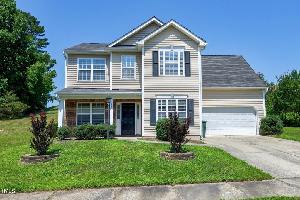 Set within the established, tree-lined community of Grove Park, this move-in ready 4-bedroom, 2.5-bath home offers a perfect combination of comfort, convenience, and recreation. Located within a short, walkable distance to the Crossings Golf Course, it provides an ideal setting for those who value both relaxation and activity. Inside, you'll find updated LVP flooring, freshly painted interiors, and new carpet throughout. The main level features a spacious family room with a cozy gas fireplace, a formal dining room, and a generous eat-in kitchen—well-suited for both daily living and entertaining. Upstairs, the owner's suite includes vaulted ceilings, an ample walk-in closet, and an en-suite bath with dual vanities. Three additional bedrooms offer flexibility for guests, a home office, or creative space. Step outside to a covered back patio, an inviting retreat for morning coffee, outdoor dining, or unwinding after a day on the course. The 2-car garage provides additional storage for everyday convenience. As a Grove Park resident, you'll have access to resort-style amenities including an Olympic-sized pool, tennis courts, playgrounds, scenic walking trails, and a state-of-the-art fitness center—all within a vibrant, established neighborhood. Located just 10 minutes to Downtown Durham, 15 minutes to Duke University, and 20 minutes to RTP, this home offers exceptional access to the area's top destinations while enjoying the charm of a well-rooted community.