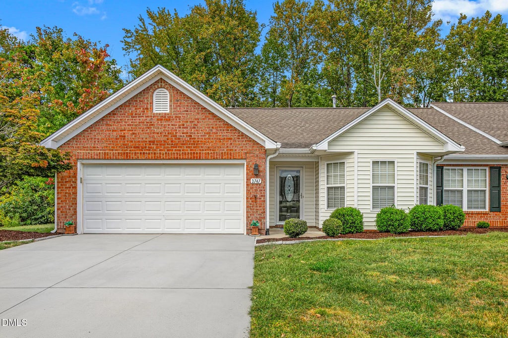 Beautiful one story end unit townhome located in highly desired Abbington Place. Conveniently located close to I-85/40, Elon University, shopping and a grocery store, this unit has two bedrooms, two full baths, an open floor plan and hardwood floors in most rooms. Large primary ensuite with sitting area and two walk-in closets with built-in shelves and drawers. Ceramic tile in bathrooms and kitchen and sun porch. Kitchen has stainless steel appliances, cherry cabinets with ceramic tile backsplash and a breakfast nook with a pantry. Large family room with a cathedral ceiling and a stacked stone gas fireplace is great for entertaining and opens into the dining room. French doors lead to the sun room which features a cathedral ceiling and palladium window with gorgeous views of the woods and outdoor entry to the patio and a fenced in backyard. Patio has a retractable awning. Washing machine, dryer, kitchen and garage refrigerator convey! Two car garage. HOA dues are $140/month which includes lawn care. This one will not last long!