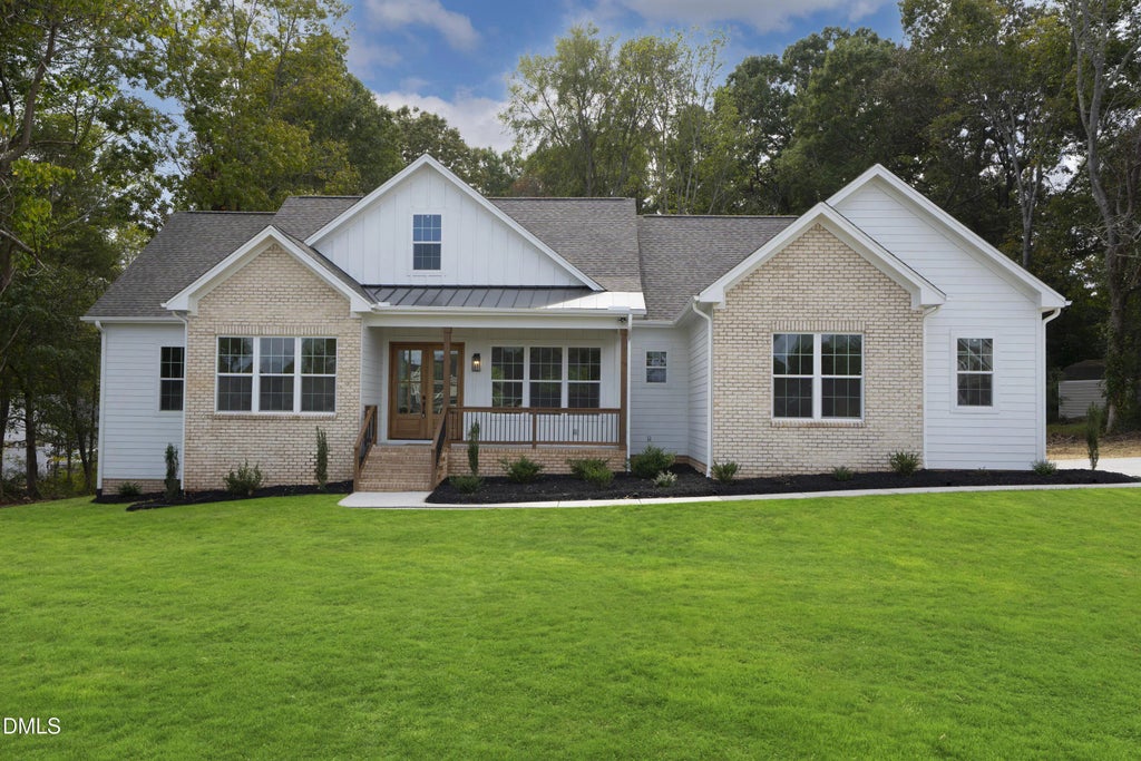 HUGE PRICE DROP!!! ✨ Stunning New Construction - Timberlake Meadows ✨ MAIN FLOOR MASTER - This drop-dead gorgeous 2025 Custom Ranch Home is the last developable site in sought-after Timberlake Meadows — truly saving the best for last! Built with no expense spared, this 4-bedroom, 2.5-bathroom residence blends timeless craftsmanship with modern luxury in a fantastic open-concept layout. Step inside through the double 8-foot mahogany craftsman doors to soaring 10-foot ceilings and an abundance of natural light from oversized windows. The interior has been professionally designed with high-end finishes throughout, including LVP flooring, a modern kitchen with quartz countertops, and spa-inspired bathrooms. The thoughtful floor plan includes a laundry room accessible from both the master closet and the hallway, making daily living effortless. Two spacious covered porches extend your living space outdoors, perfect for entertaining or simply enjoying the peaceful setting. Exterior details include a partial baked white brick façade, low-maintenance siding with a 15-year paint warranty / 30-year material warranty, and a roof backed by a 2-year workmanship warranty and 30-year shingles. Drainage pipes around the perimeter of the home provide additional peace of mind. Short commute to Durham, Raleigh, and Chapel Hill, this serene Timberlake location offers the perfect blend of convenience and tranquility. Don't miss this rare opportunity to own a brand-new, custom-quality home in Timberlake Meadows!