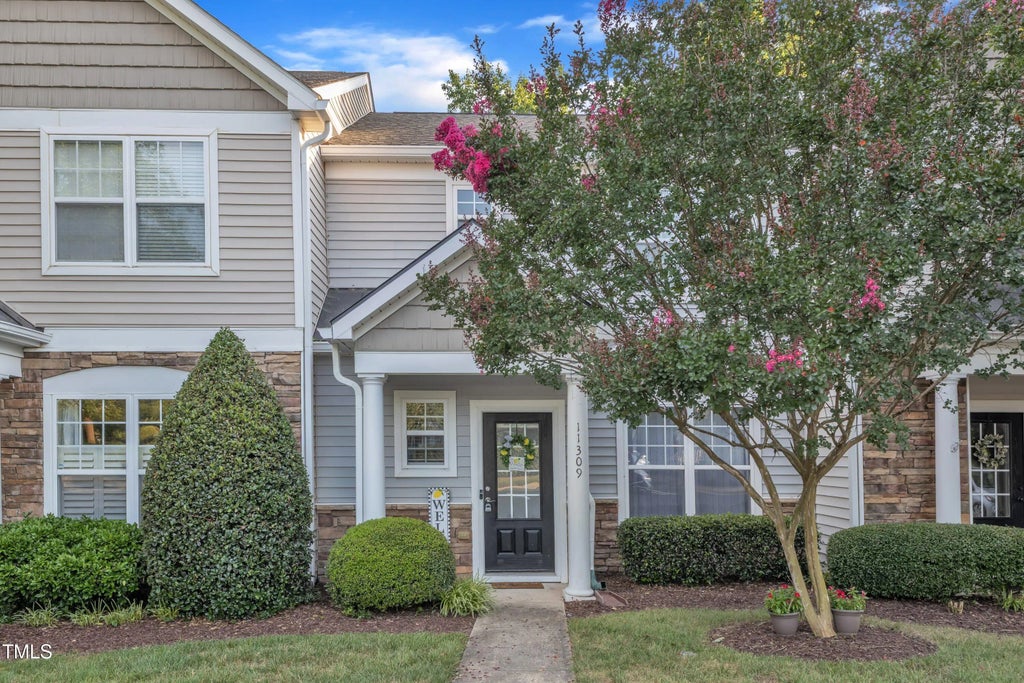 Welcome to this immaculate, move-in ready townhome in the highly desirable Bedford at Falls River community! Thoughtfully updated and beautifully maintained, this home offers modern style and easy living in one of North Raleigh's favorite neighborhoods. Enjoy brand new luxury vinyl plank flooring throughout the first floor, fresh paint downstairs, and new plush carpet upstairs. The bright kitchen features stainless steel appliances less than 2 years old, plus ample cabinet space and a breakfast bar. The open living and dining areas flow to a private patio that backs to mature trees — perfect for morning coffee or quiet evenings outdoors. An attached storage space in the back yard to keep everything organized. Upstairs, the spacious owner's suite boasts a vaulted ceiling, huge walk-in closet, and en-suite bath with dual vanity, soaking tub, and separate shower. The large secondary bedroom includes its own private full bath, making it ideal for guests, a roommate, or a home office. Residents love Bedford Commons for its tree-lined streets, friendly neighbors, and fantastic amenities. You'll be just steps from the community pool, tennis courts, playgrounds, and miles of scenic trails along the Raleigh Greenway. Additional updates include a new water heater in 2020 and roof in 2022, making this home truly move-in ready with peace of mind for years to come. Conveniently located near top-rated schools, shopping, dining, and major commuter routes, this townhome checks all the boxes for comfort and convenience. Don't miss your chance to live in this vibrant, walkable community and enjoy all that Bedford at Falls River has to offer!