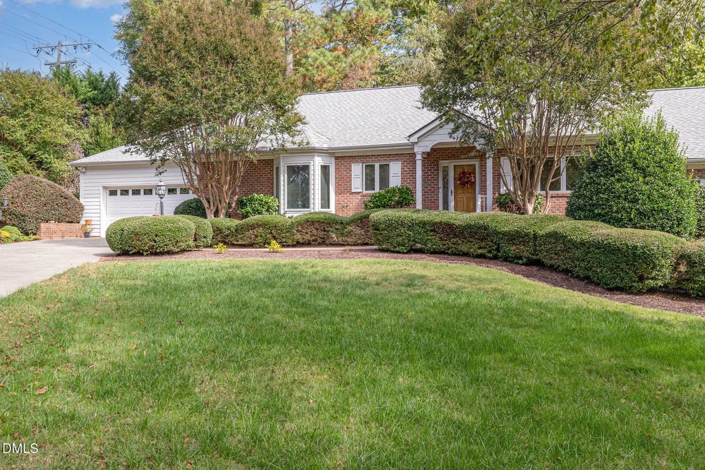 One-level townhouse with a two-car garage in a great east Chapel Hill location! Wonderful floor plan with three bedrooms and two full baths. Foyer with hardwood flooring leads to open living/dining room with fireplace and two sets of French doors that open to a private deck. Spacious kitchen with breakfast area includes a built-in desk plus great storage. Primary bedroom suite has a large walk-in closet and a private bath with tile floor and shower, double vanity, soaking tub, and skylight solar tube. Second full bath also has tile flooring and a solar tube skylight. Laundry room. Built-in shelving in the garage. New roof within last year. This location is convenient to UNC and Duke and very close to Wegmans, Trader Joes, and other