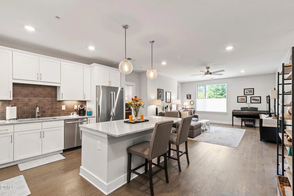 Experience the vibrancy of booming downtown Cary in the serenity of a peaceful, newer development! Unit 204 boasts an open layout and features a bright white kitchen including granite countertops, soft-close cabinetry, large kitchen island, GE Profile appliances and storage galore. The engineered hardwoods flow to large living space, west facing for abundant natural light. Step onto the shaded balcony perfect for morning coffee. The primary suite is a standout with its lavish size and walk-in ensuite with large dual vanity, functional cabinetry solutions, glass-door and tiled shower, plus walk-in closet with motion lighting. The guest suite boasts another walk-in closet and large guest bathroom with soaking tub and custom cabinet vanity. The walk-in laundry with added storage shelf is convenient and functional for bulk storage. With a storage unit included along with one of the best, closest parking spots the building has to offer - Unit 204 is the total package. On top of it all, Chatham Walk is a vibrant community with friendly events put on by the building's social committee. Walk to attractions like nationally-rated Downtown Cary Park, Urban Park, restaurants, bars, breweries, library, shopping and the local Town Hall campus - this home is a true blend of urban life with modern conveniences.