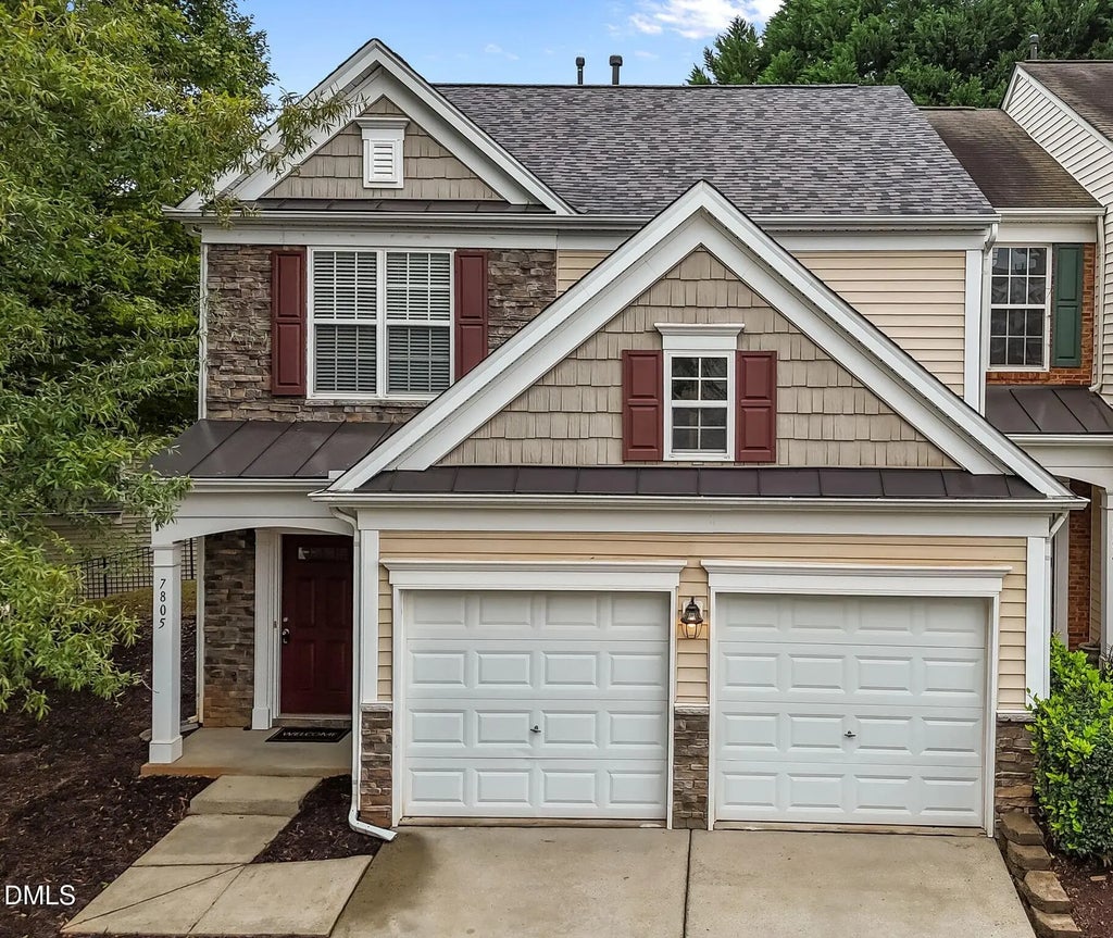 Welcome to this beautifully maintained end-unit townhouse in the highly sought-after Long Lake Community! Situated on a desirable corner lot, this home offers both privacy and charm. Inviting curb appeal with stacked stone and low maintenance vinyl siding. Enjoy a spacious 2-car garage with additional attic storage, and a low maintenance fenced patio featuring hardscape, green-space, and a lockable gate—perfect for relaxing or entertaining. Inside, the open-concept first floor boasts engineered hardwood floors, beautiful trim and millwork, a welcoming gas fireplace, abundant natural light, spacious eat-in kitchen with ss appliances, and a seamless flow ideal for modern living. The elegant master suite with cathedral ceiling and huge walk-in closet is impressively spacious and must be seen to be truly appreciated. Community amenities include an Olympic-sized pool, fitness center, clubhouse, playground, and tennis/pickleball courts—all within a walkable neighborhood. Conveniently located with easy access to RDU Airport, RTP, I-540, I-40, top-rated schools, shopping, Umstead Park hiking trails, and Downtown Raleigh. Recent updates include a new roof (2023), wooden privacy fence (2023), washing machine (2022), and new carpet and paint (2025). This turn-key move in ready home has it all! Schedule your tour today!