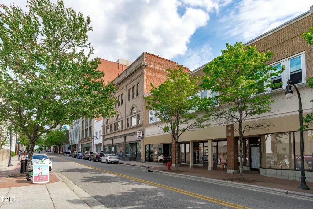 Step into a one-of-a-kind condo in the heart of Downtown Durham - Floor-Through unit in the 323 West Main Building embolden with history. Now home to ''The Loft's'', 9 historic condominiums with character, light, and soul remodeled in 1992. Unit C is a double unit condo with soaring 10' ceilings, original heart pine floors, triple-pane windows (sneaky quiet and efficient), and a beautiful exposed plaster wall runs the length of the unit adding warmth and vintage charm. Whether you need two true bedrooms or prefer a light filled expansive primary with an adjacent office or studio, the layout can adapt to your needs. The renovated primary bathroom is bright, elegant, and the funky-cool kitchen adds just the right personality to match your funk. Best of all? A 400 sqft private rooftop recently enhanced with brand new Trex, with views of AT towers - ideal for entertaining, unwinding, or even gardening with the water spigot. Move in and you're the Downtown Don or the Downtown Dame - in the thick of all downtown has to offer. Great restaurants, coffee, entertainment, galleries, and world class cultural offerings, the streets are your oyster.