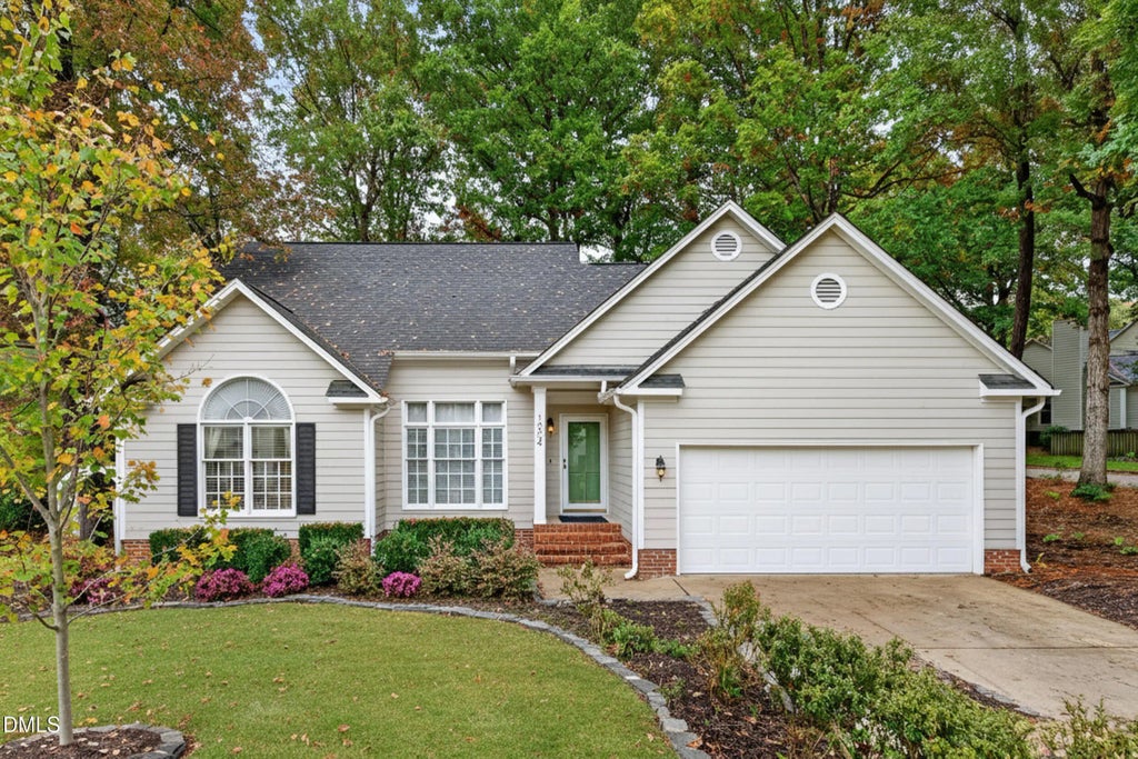 Tucked away on a quiet corner lot, this home truly offers the best of both worlds—peaceful privacy with an unbeatable location just minutes from I-540 and downtown Raleigh. You'll love living in this friendly neighborhood that has so much to offer, including a pool, clubhouse, playgrounds, and walking trails for those afternoon strolls. Step inside and you'll immediately feel the warmth of the space. Large windows fill the home with natural light, showing off the thoughtful layout and open, inviting feel. The primary suite is on the main floor, complete with a large walk-in closet and a spa-like bathroom featuring a soaking tub, separate shower, double vanity, and private water closet—everything you need to relax and recharge. You'll also find a formal dining room that's perfect for special occasions or could easily double as an office, plus a bright eat-in kitchen with granite countertops and stainless steel appliances. There's no carpet on the main floor, which keeps things simple and easy to maintain. Upstairs are two spacious bedrooms with great closet space and a full bath, making this level perfect for family, guests, or a quiet workspace. Outside, the fenced yard is ideal for pets or play, and the deck is a wonderful spot to enjoy your morning coffee or unwind in the evening while listening to the birds and taking in the natural setting. With a two-car garage, bright interiors, and a prime location close to everything Raleigh has to offer, this home is the perfect blend of comfort, convenience, and charm.