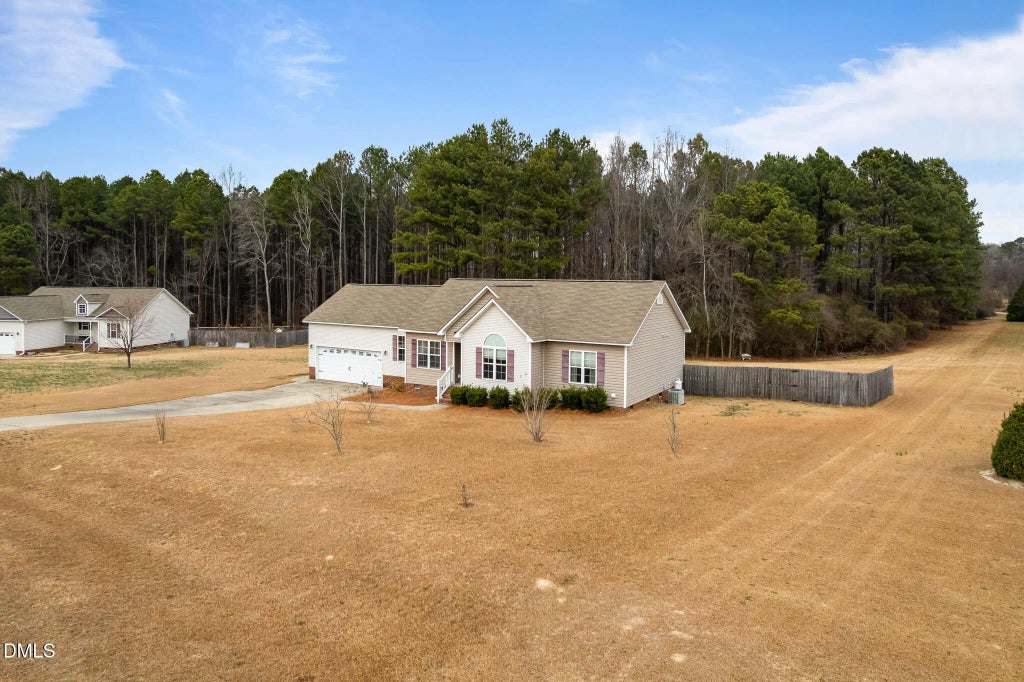 This charming 3-bedroom, 2-bathroom ranch in the established Meredith Station community of Fuquay-Varina offers a rare blend of space and freedom with no HOA. Set on over two acres, the property features over 1,400 sq. ft. of comfortable, single-story living. A gas log fireplace serves as the heart of the home, perfect for chilly evenings. Move-in ready with a newer water heater, a brand-new kitchen sink, and fresh back steps. The home offers an attached two-car garage complemented by a large detached shed for all your tools and toys. Enjoy the tranquility of a quiet neighborhood while being minutes from the vibrant dining and shopping in downtown Fuquay-Varina.